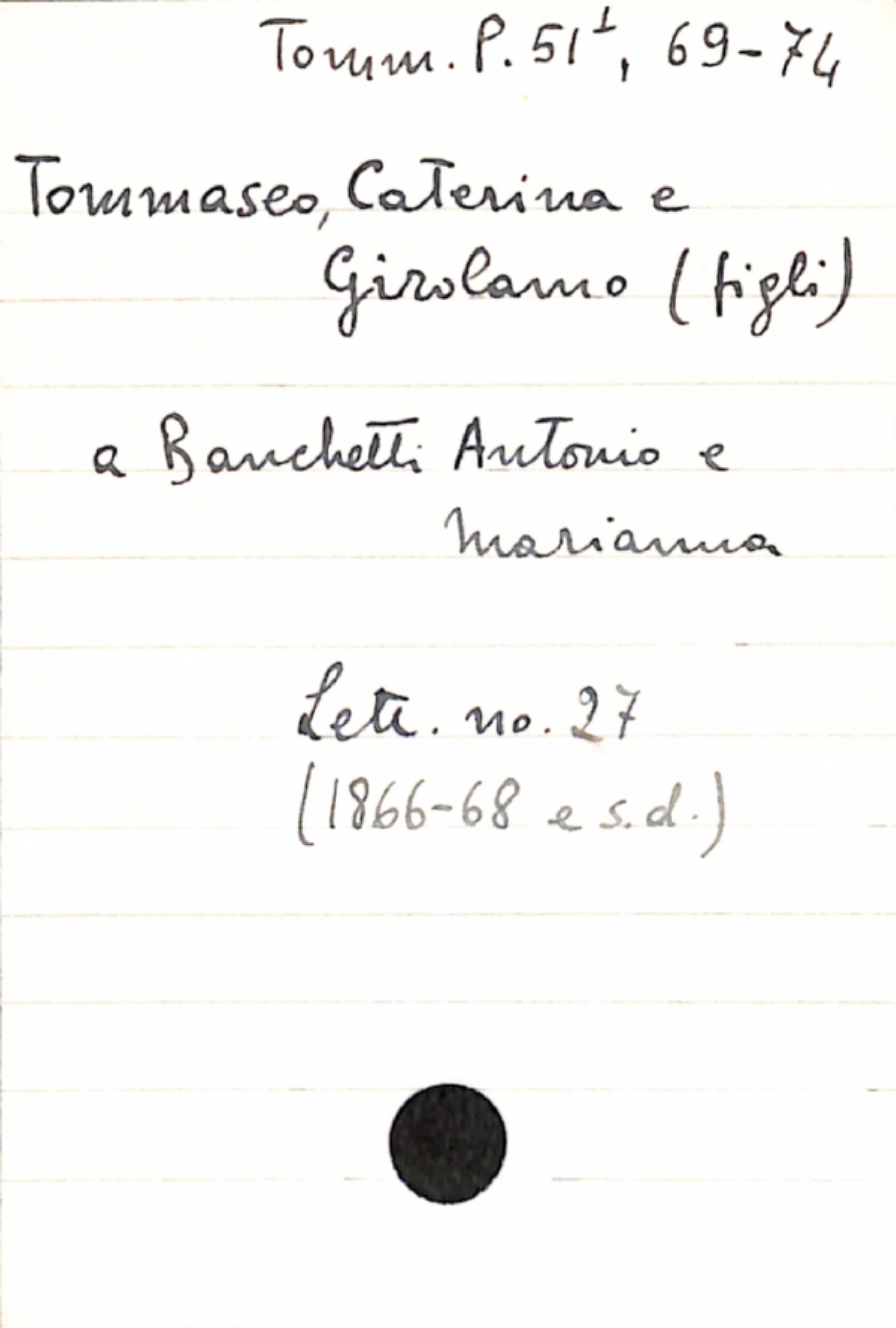 • Tommaseo, Caterina; Tommaseo, Girolamo (figli) a Banchetti, Antonio; Banchetti, Marianna