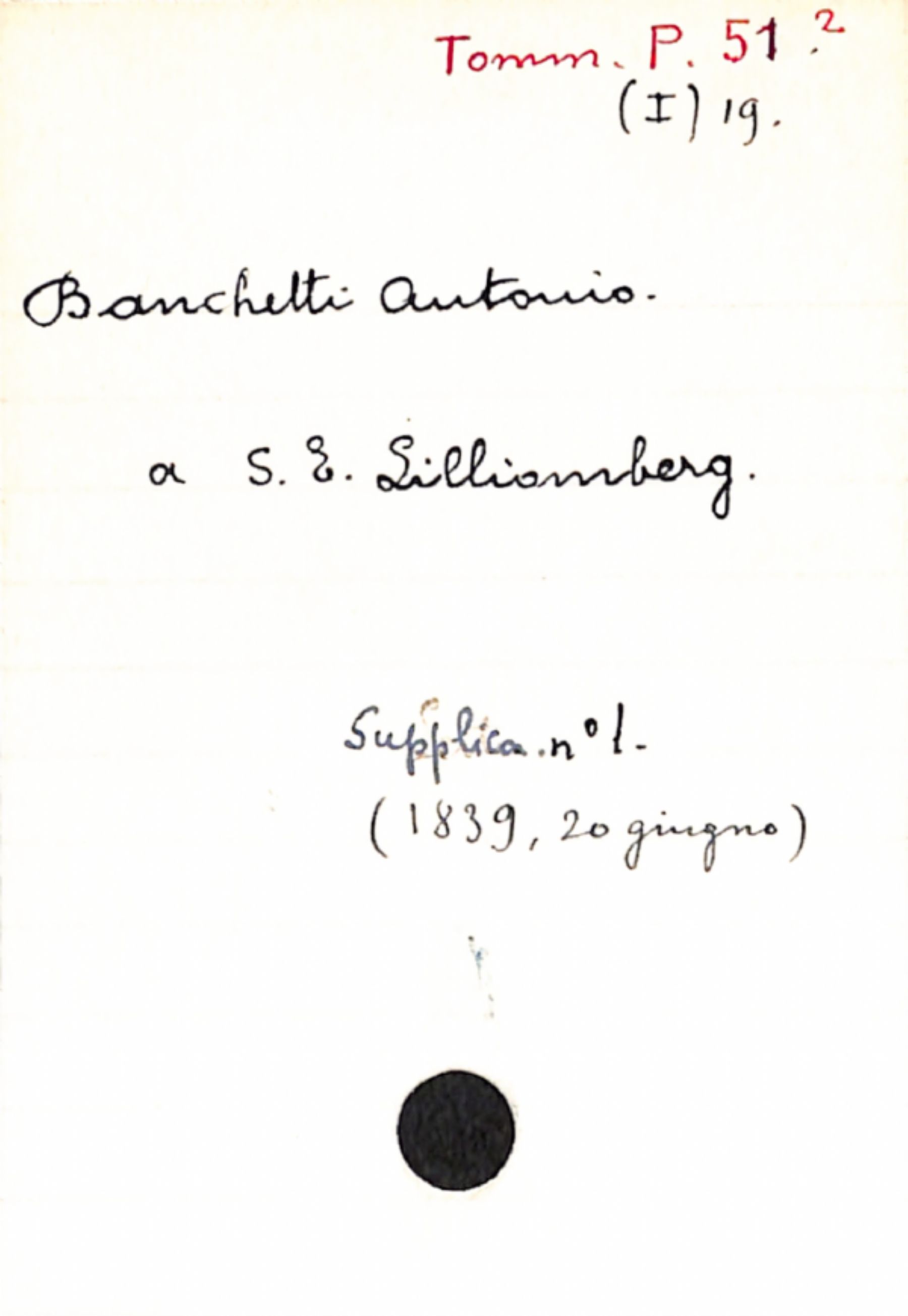 Fascicolo Banchetti, Antonio a Lilliomberg, S. E.