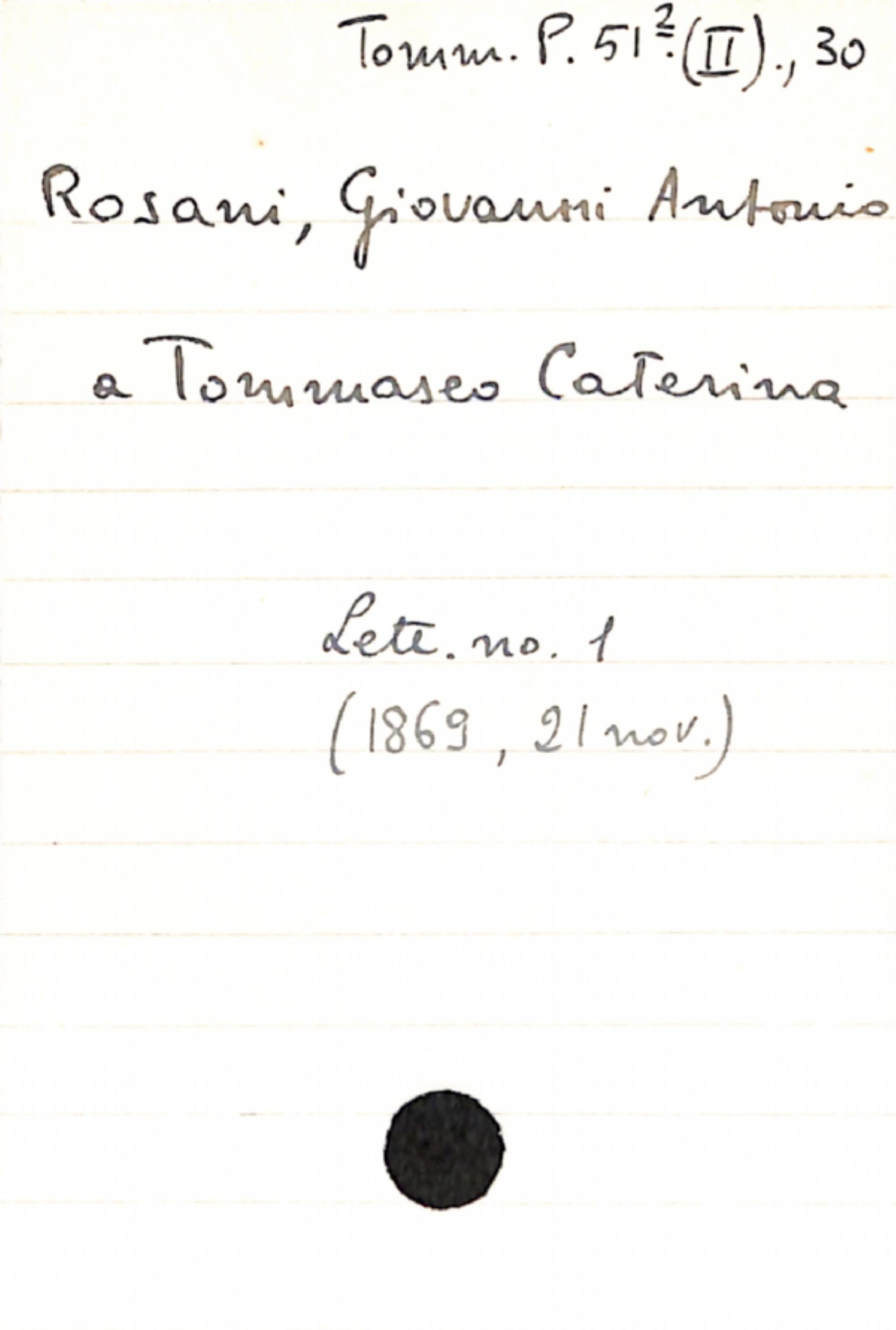 Fascicolo Rosani, Giovanni Antonio a Tommaseo, Caterina