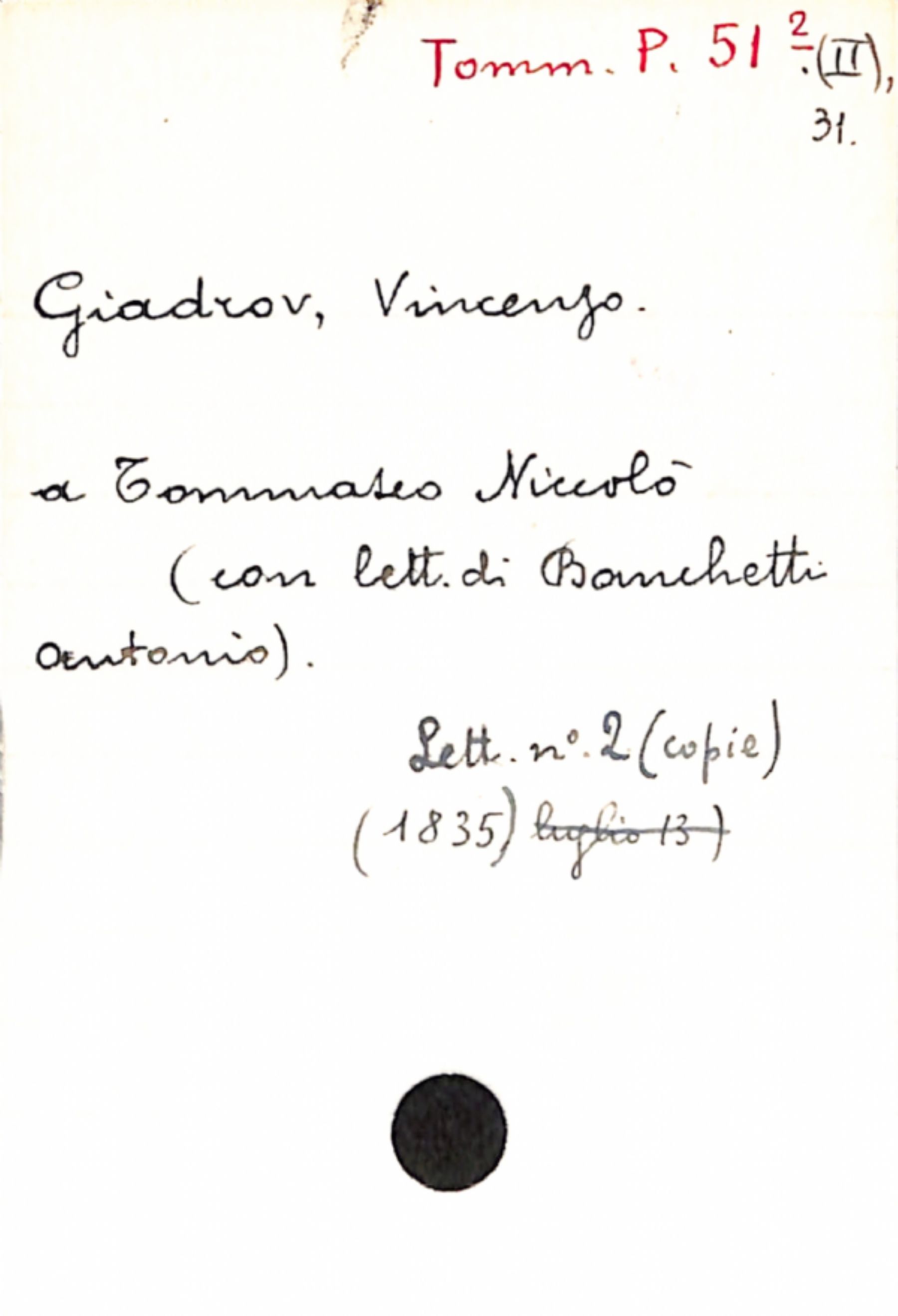 Fascicolo Giadrov, Vincenzo a Tommaseo, Niccolò