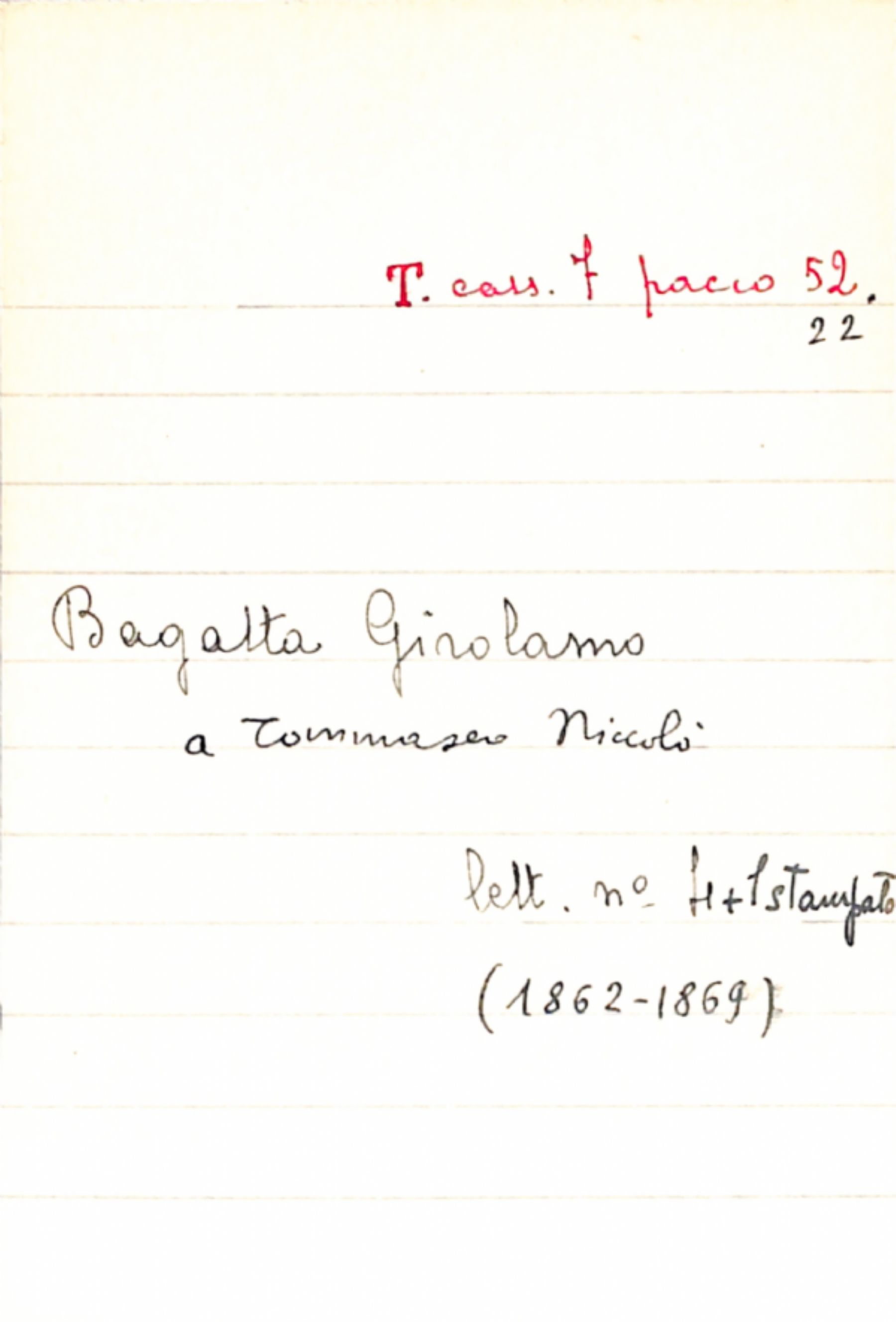 Fascicolo Bagatta, Girolamo a Tommaseo, Niccolò