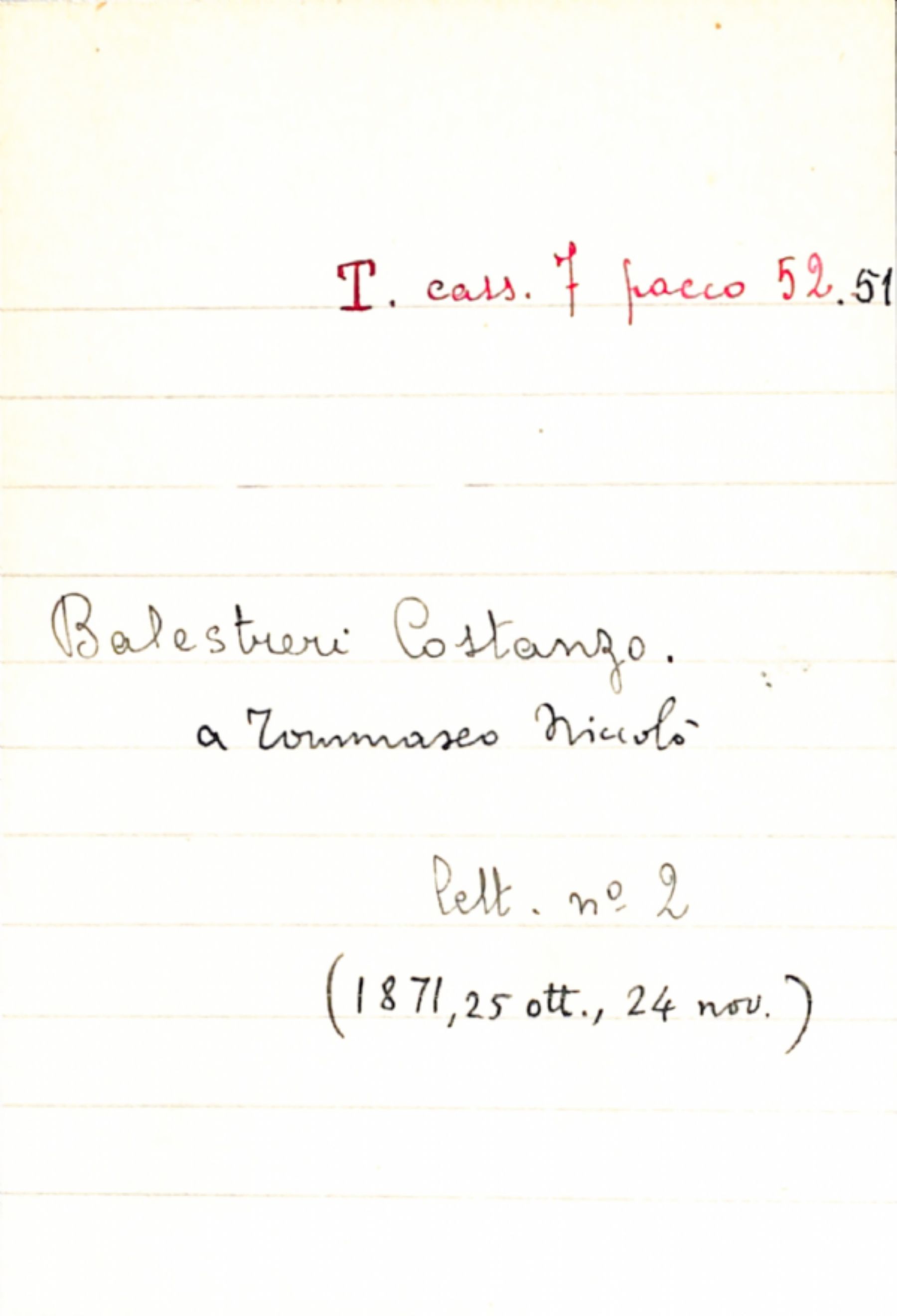 Fascicolo Balestreri, Costanzo a Tommaseo, Niccolò
