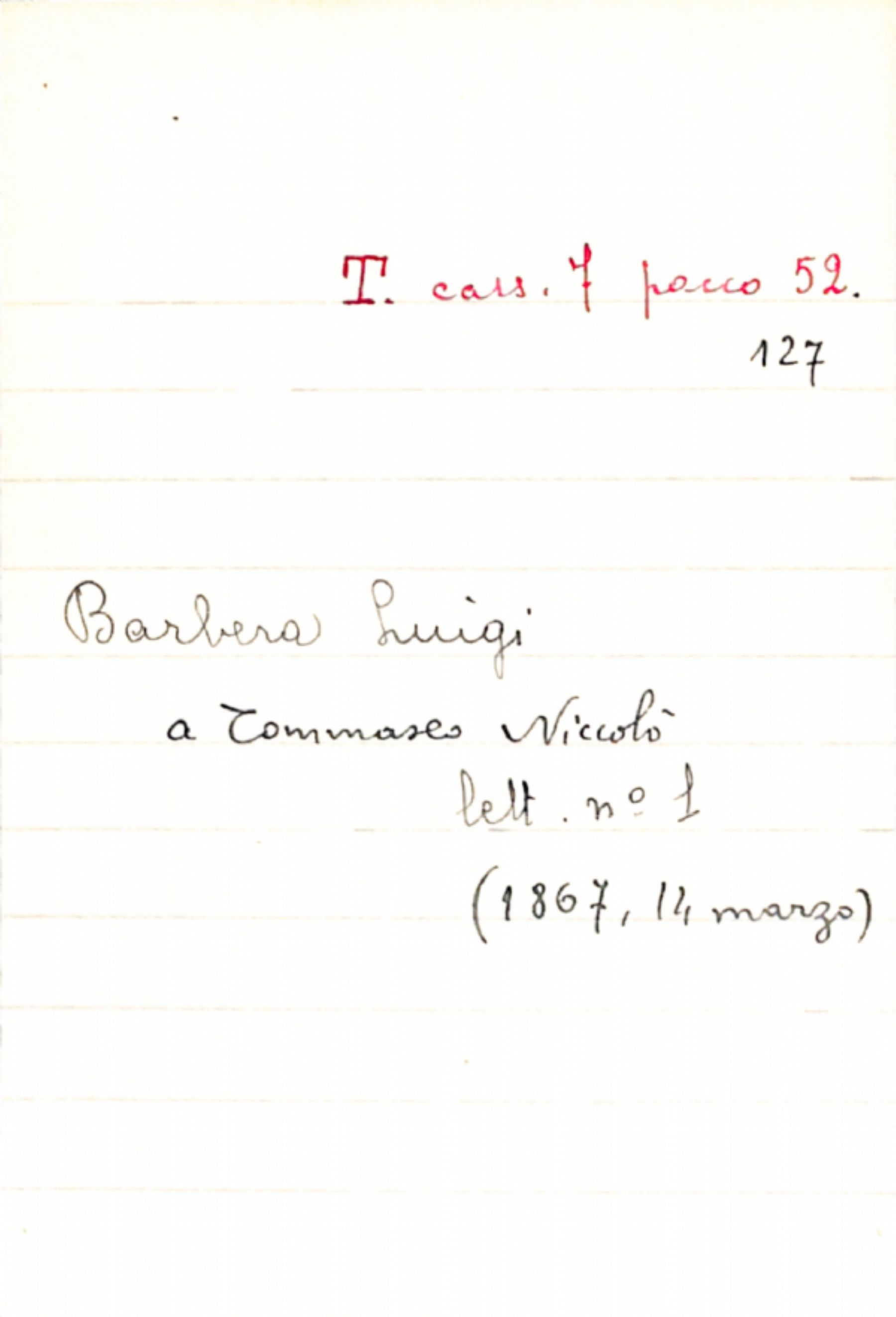 Fascicolo Barbera, Luigi a Tommaseo, Niccolò