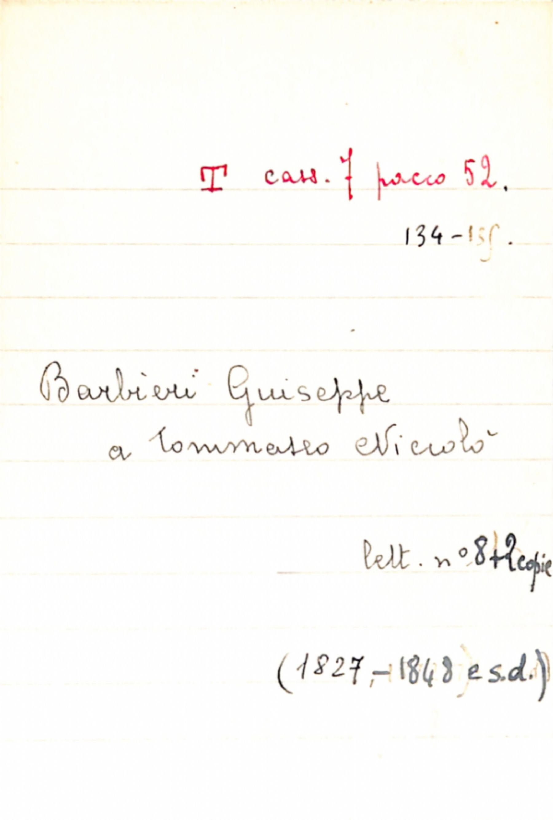Fascicolo Barbieri, Giuseppe a Tommaseo, Niccolò