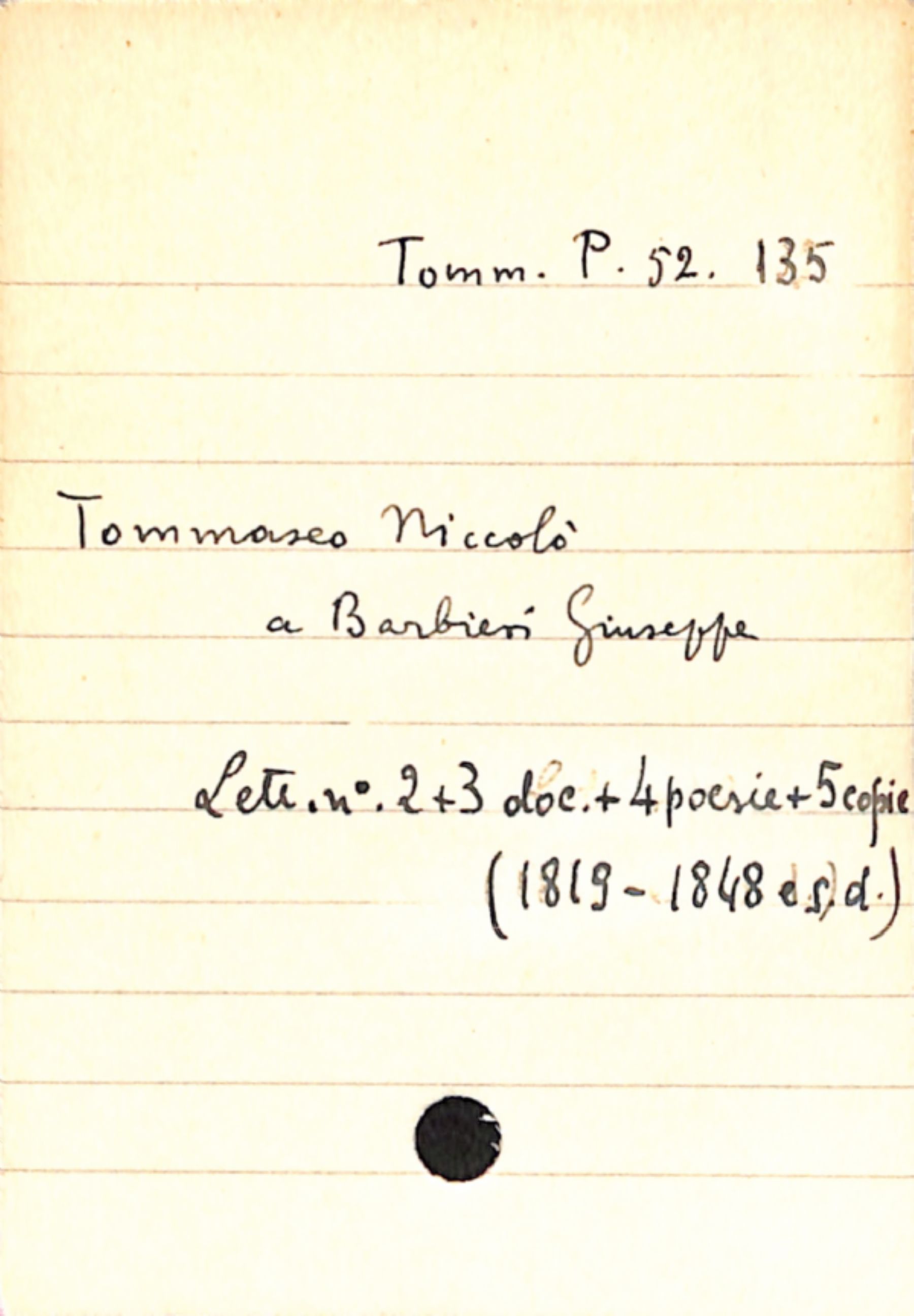 Fascicolo Tommaseo, Niccolò a Barbieri, Giuseppe