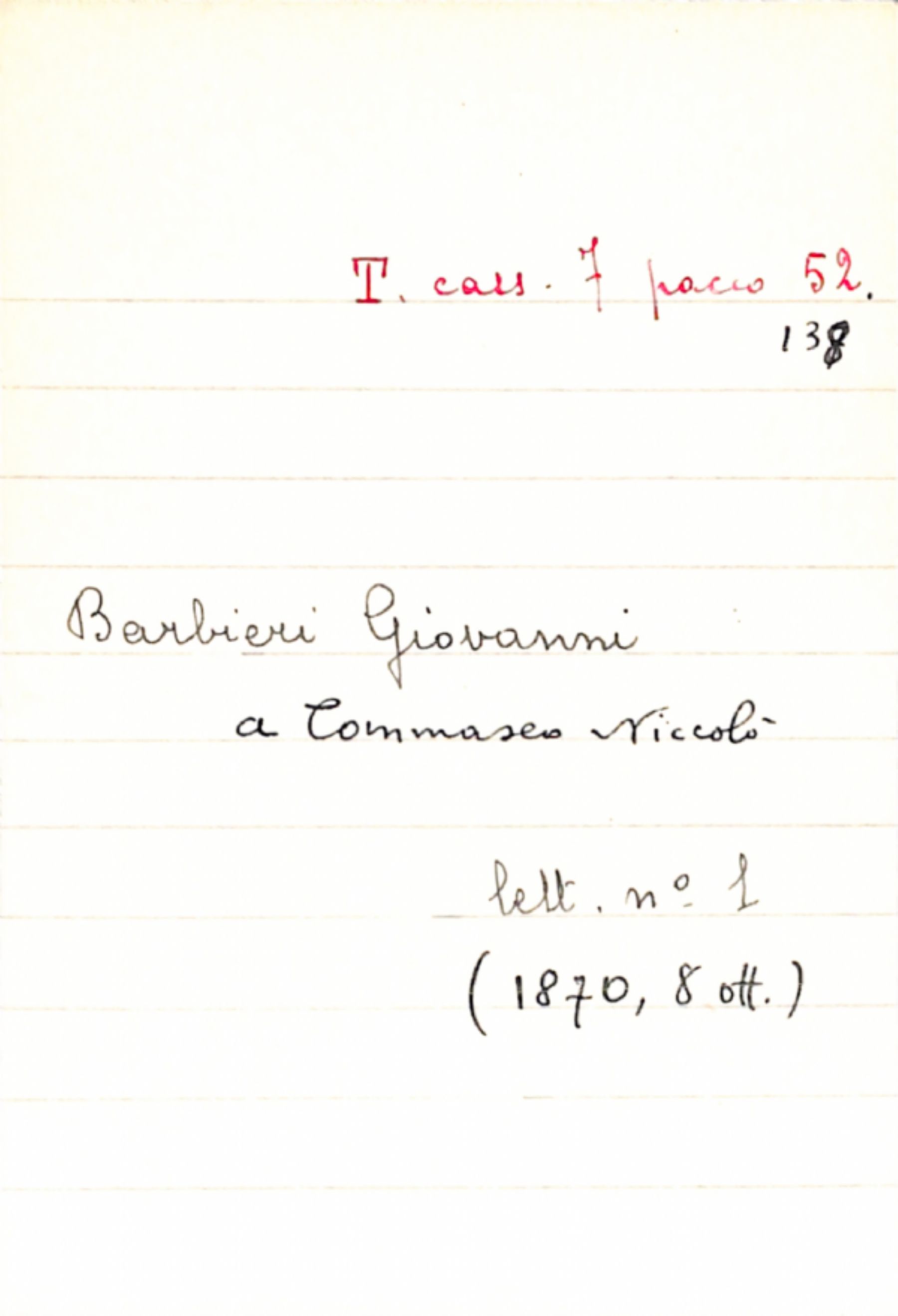 Fascicolo Barbieri, Giovanni a Tommaseo, Niccolò