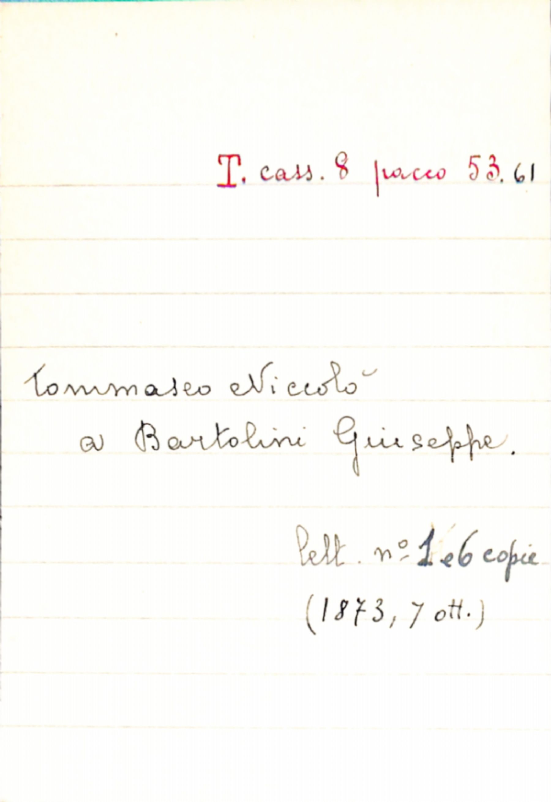 Fascicolo Tommaseo, Niccolò a Bartolini, Giuseppe