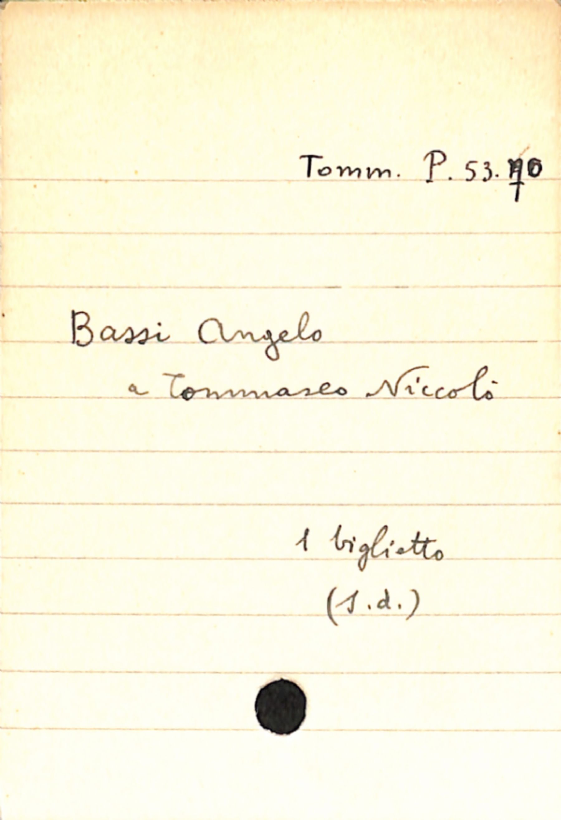 Fascicolo Bassi, Angelo a Tommaseo, Niccolò