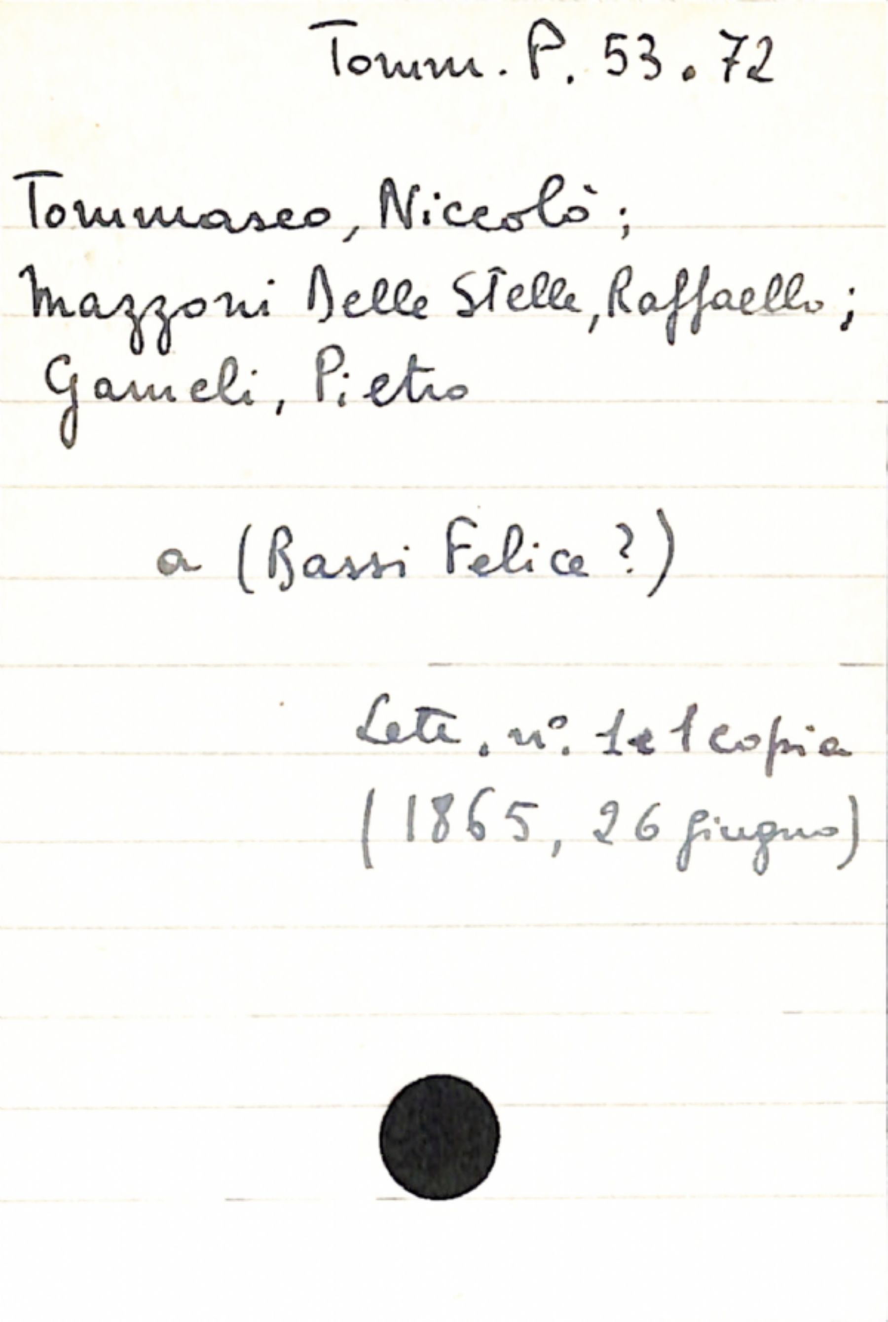 Fascicolo Tommaseo, Niccolò; Mazzoni Delle Stelle, Raffaello; Gameli, Pietro a (Bassi, Felice?)