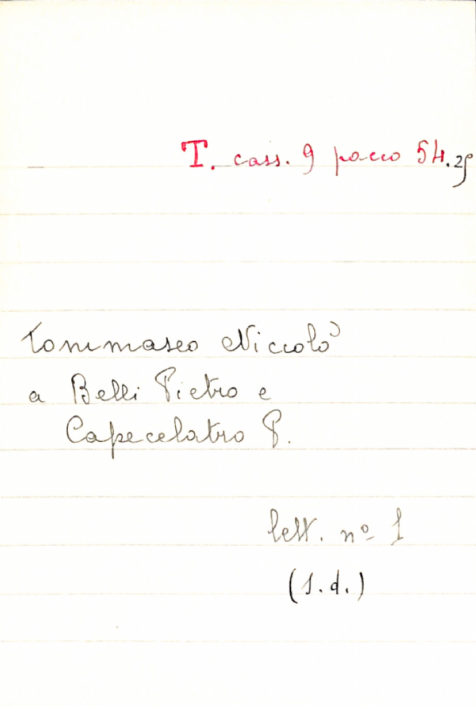 Fascicolo Tommaseo, Niccolò a Belli, Pietro; Capecelatro, P.