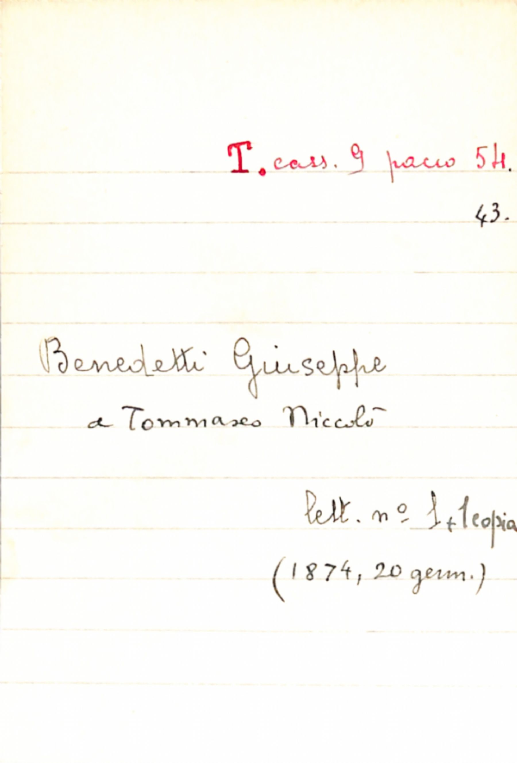 Fascicolo Benedetti, Giuseppe a Tommaseo, Niccolò