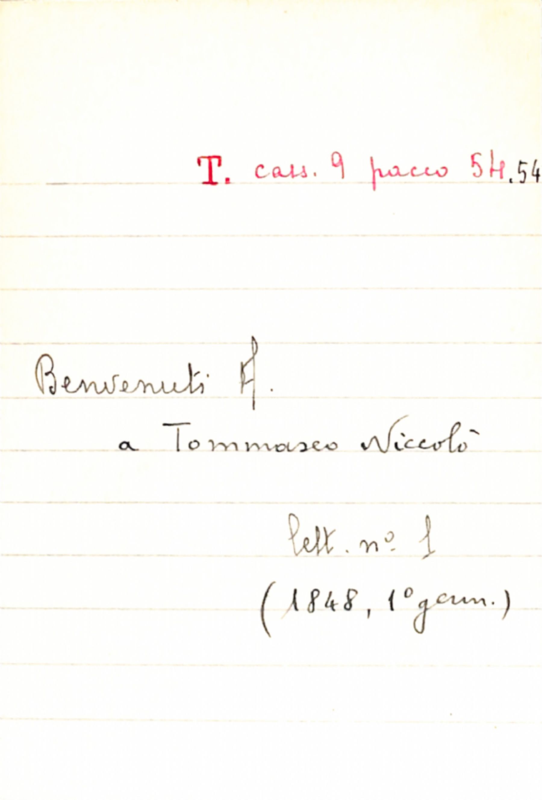 Fascicolo Benvenuti, A. a Tommaseo, Niccolò