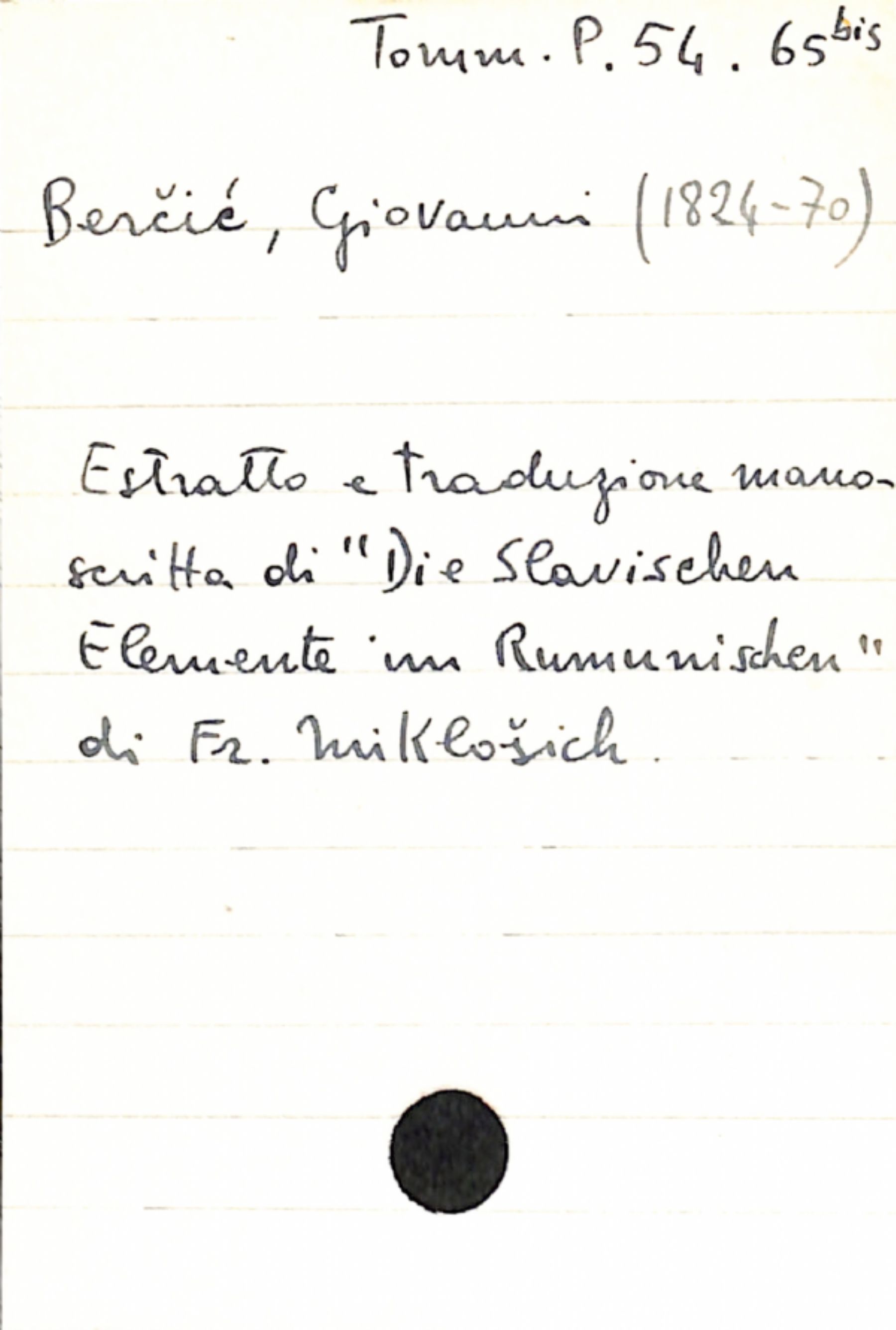 • Berĉić, Giovanni a [senza destinatario]