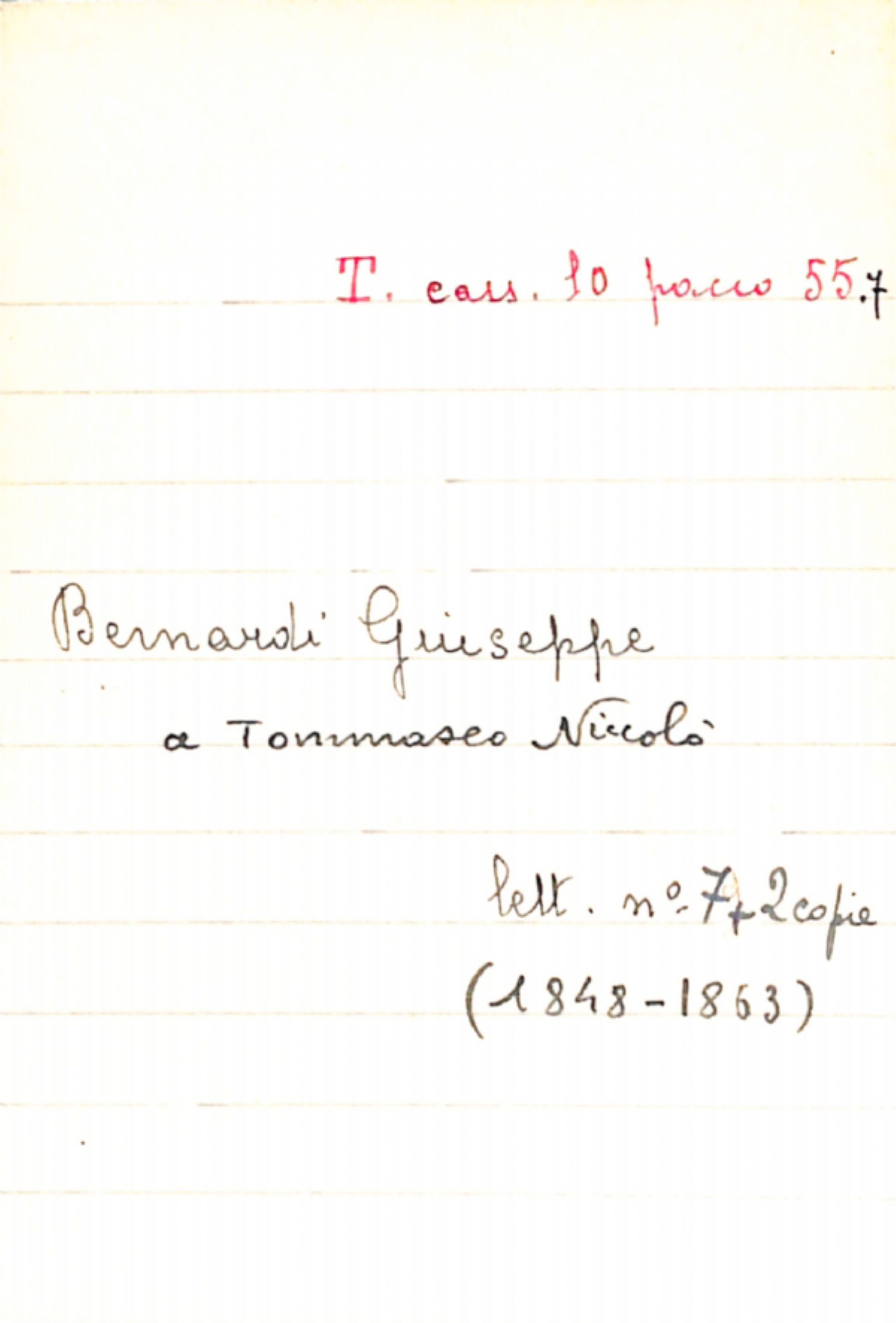 Fascicolo Bernardi, Giuseppe a Tommaseo, Niccolò