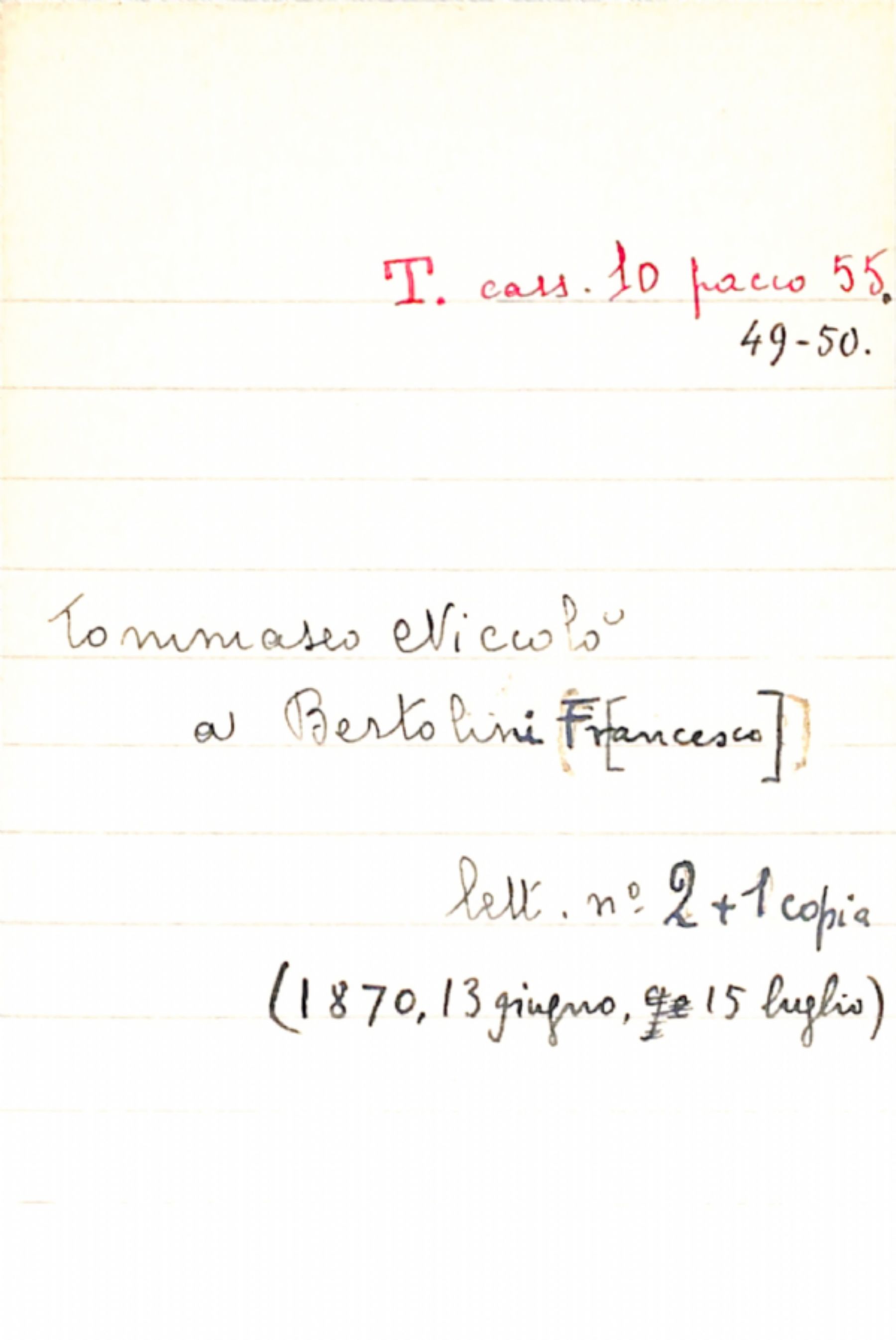 Fascicolo Tommaseo, Niccolò a Bertolini, Fr[ancesco]