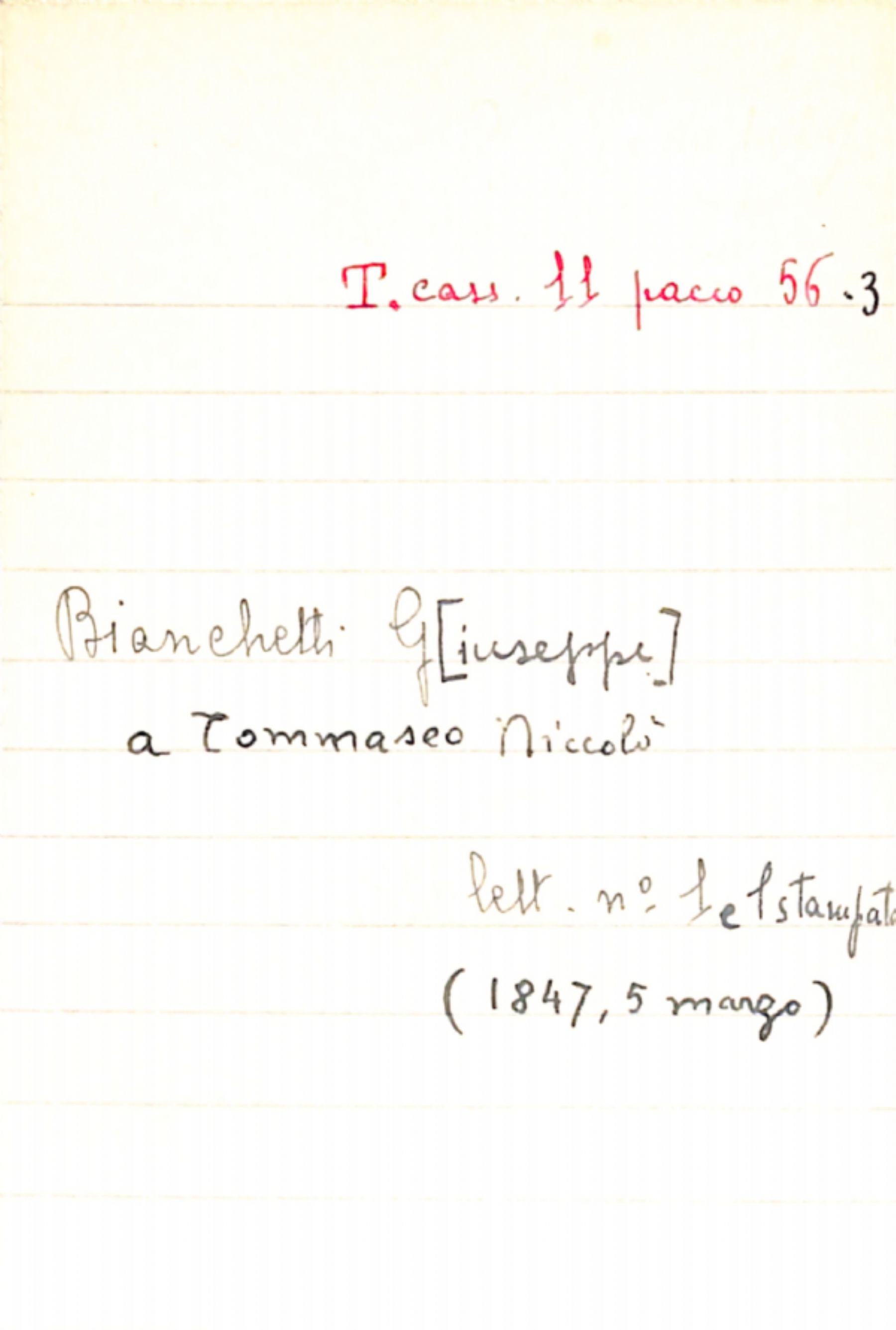 • Bianchetti, G[iuseppe] a Tommaseo, Niccolò
