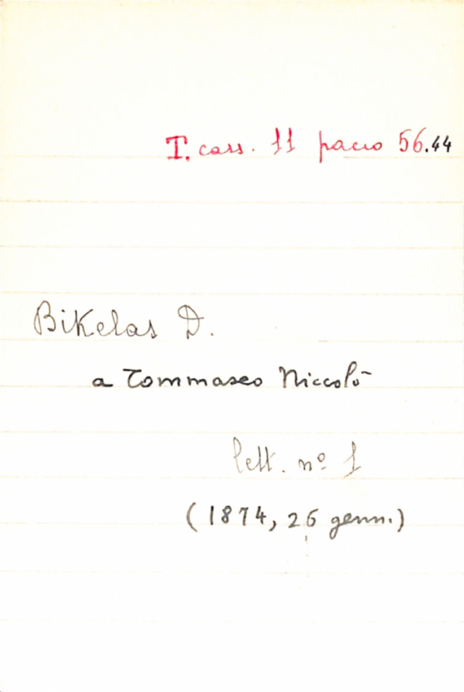 Fascicolo Bikelas, D. a Tommaseo, Niccolò