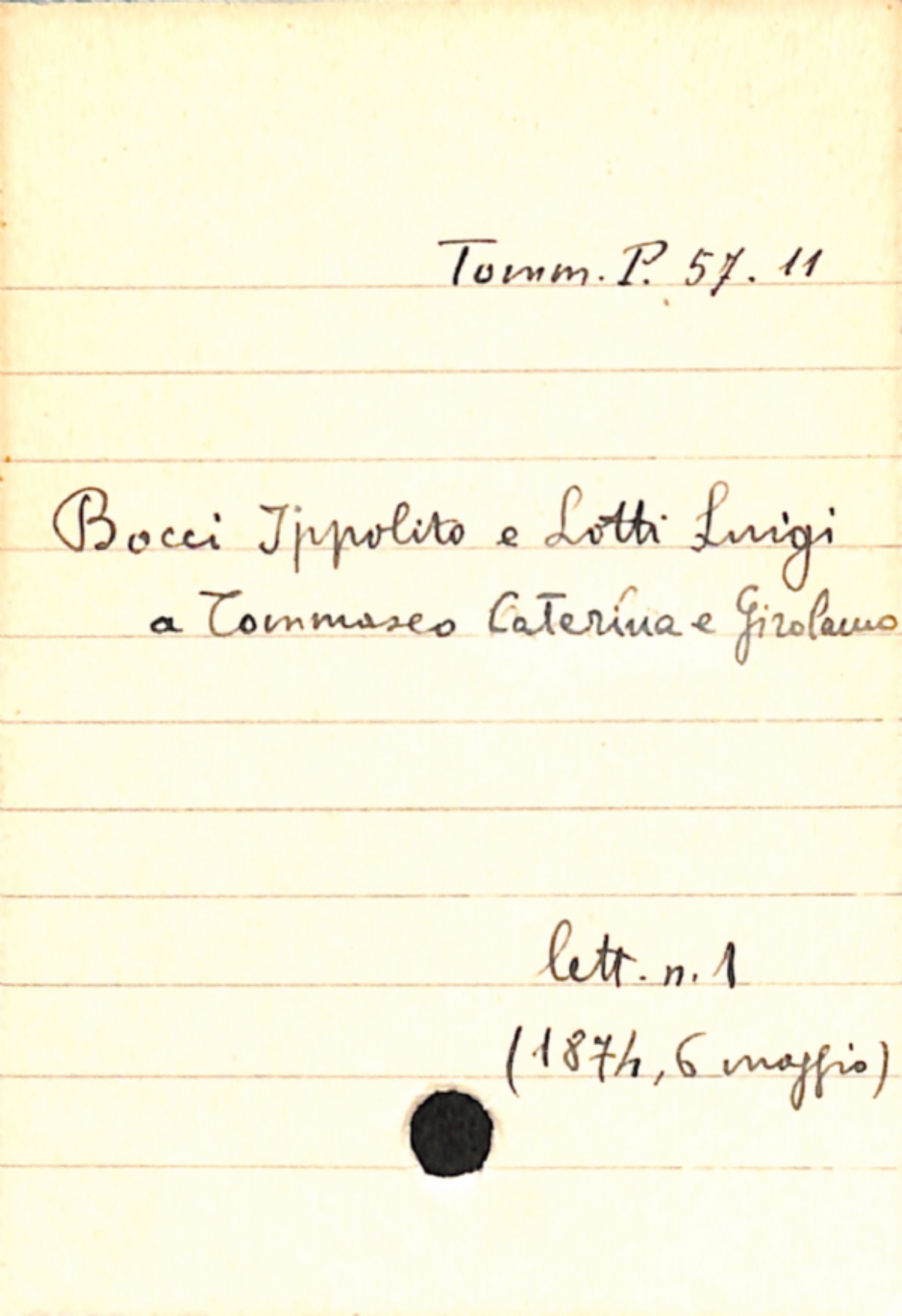 Fascicolo Bocci, Ippolito; Lotti, Luigi a Tommaseo, Caterina; Tommaseo, Girolamo