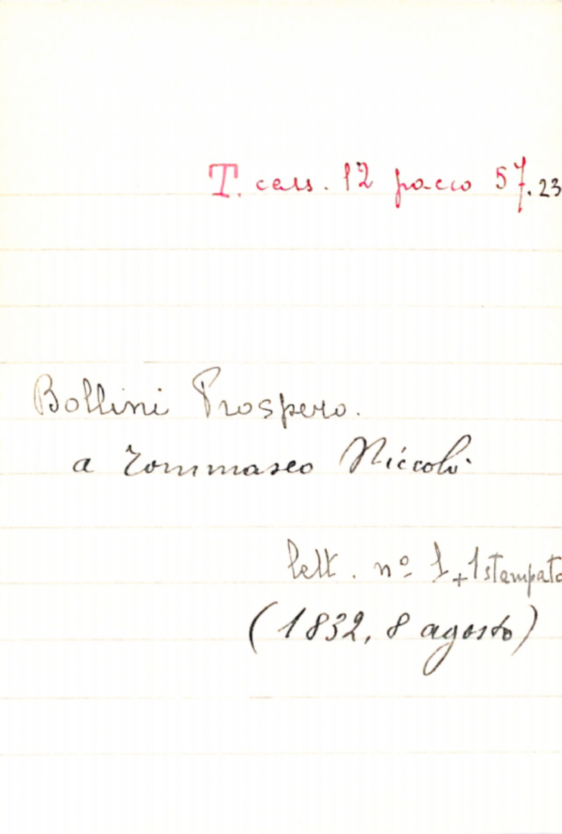 Fascicolo Bollini, Prospero a Tommaseo, Niccolò