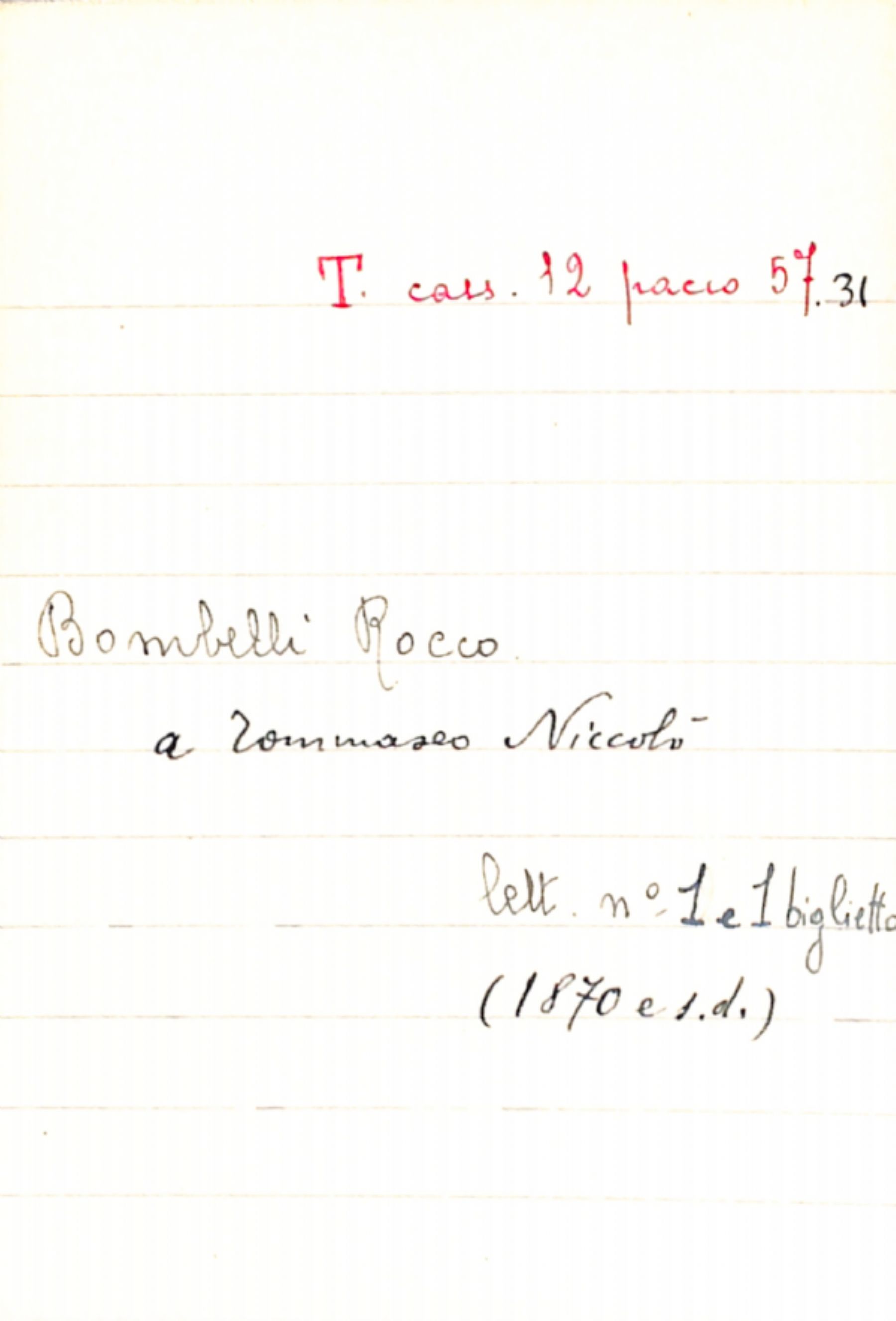 Fascicolo Bombelli, Rocco a Tommaseo, Niccolò