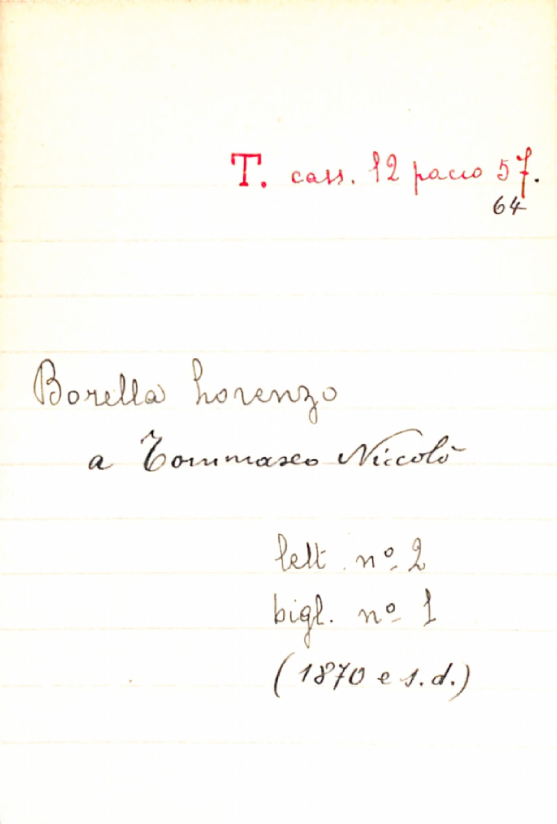 Fascicolo Borella, Lorenzo a Tommaseo, Niccolò