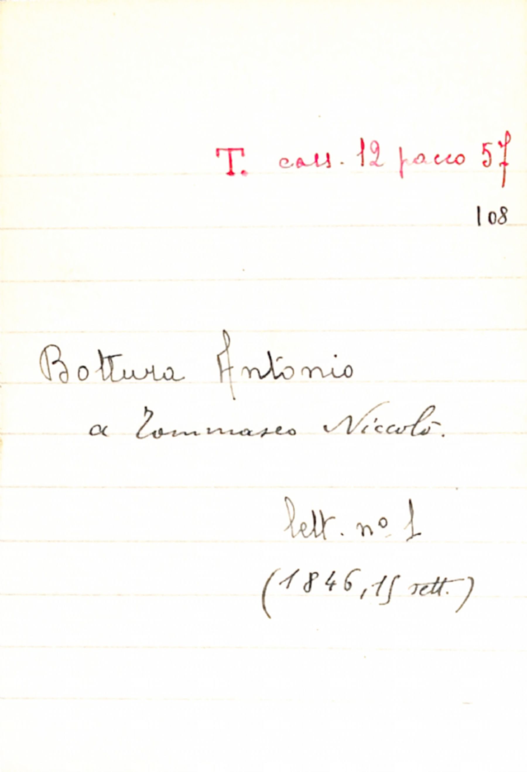 Fascicolo Bottura, Antonio a Tommaseo, Niccolò