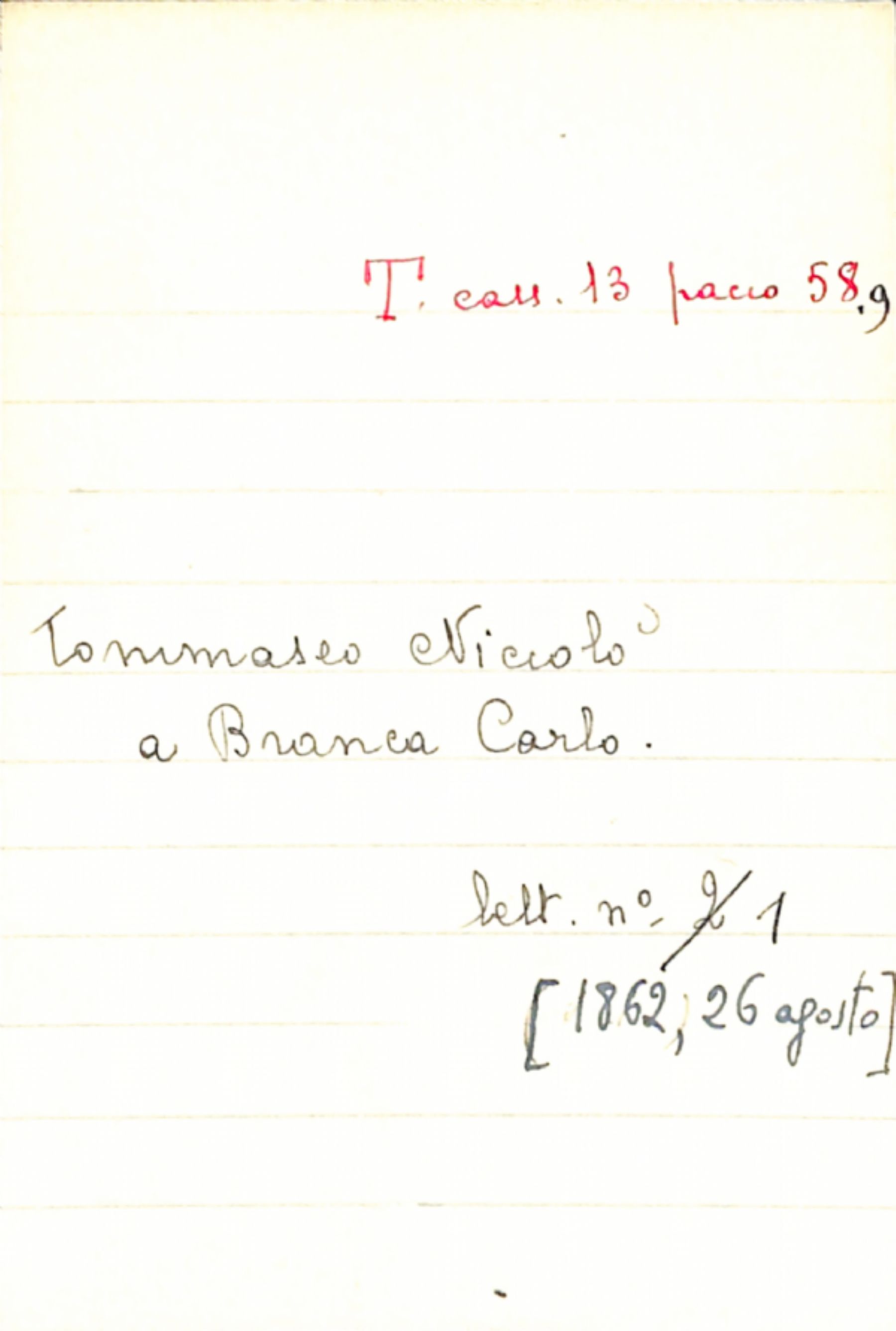Fascicolo Tommaseo, Niccolò a Branca, Carlo