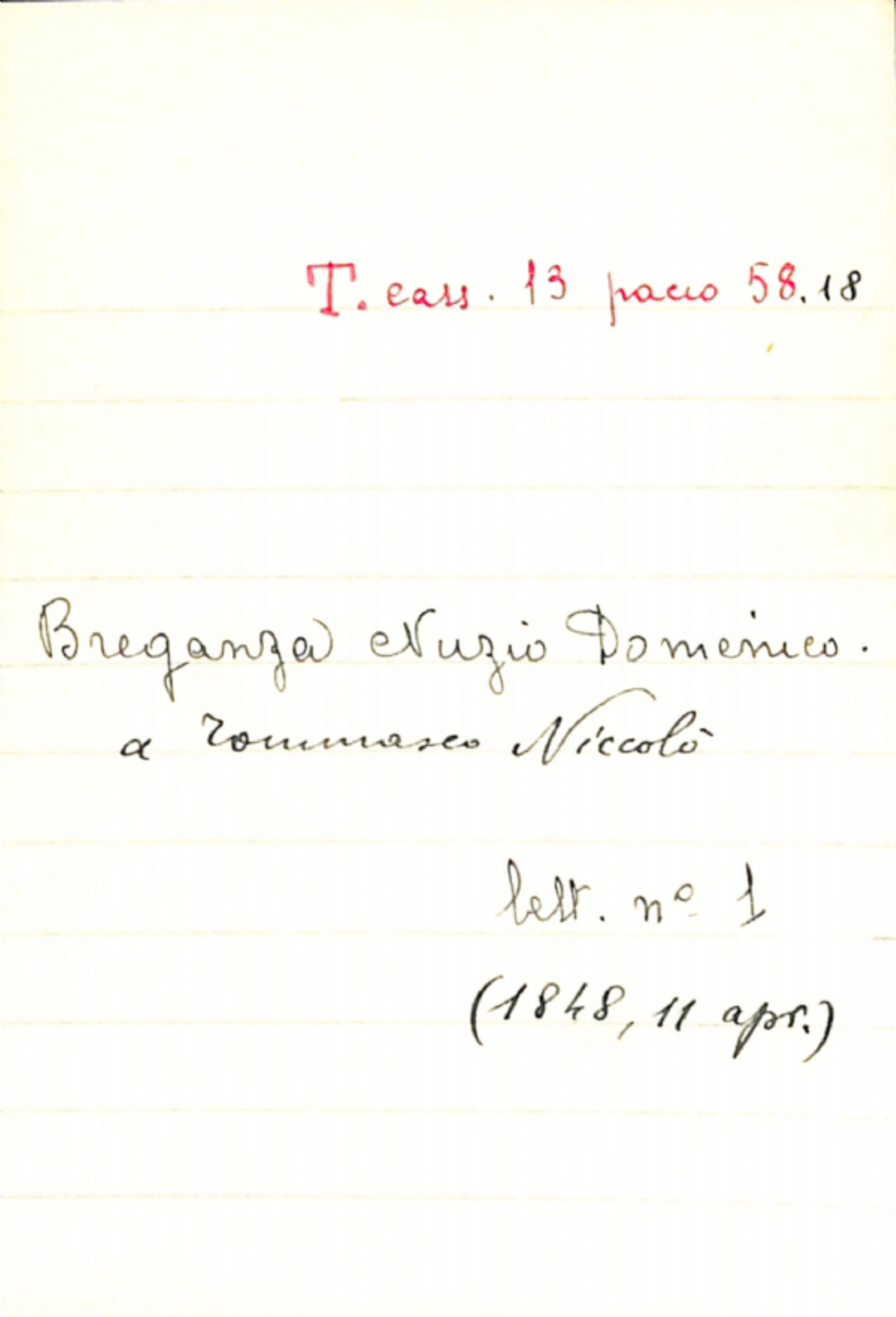 Fascicolo Breganza, Nuzio Domenico a Tommaseo, Niccolò