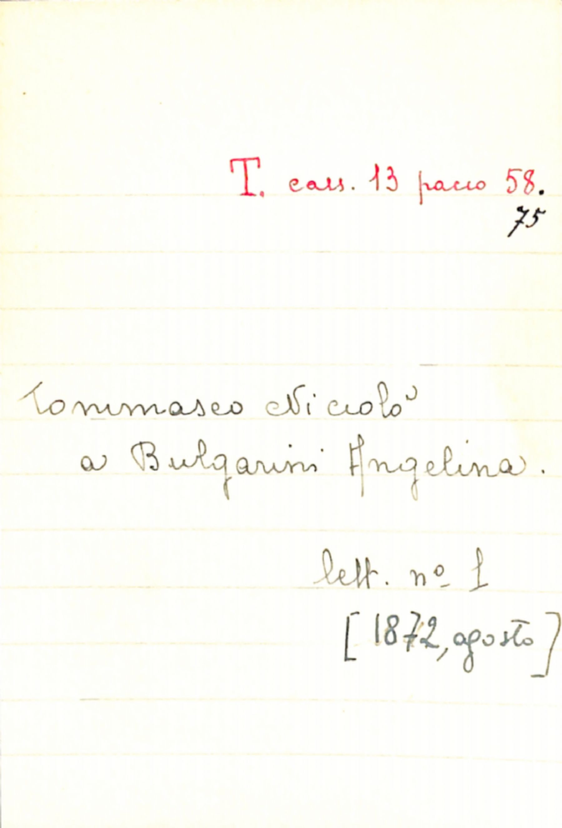 Fascicolo Tommaseo, Niccolò a Bulgarini, Angelina