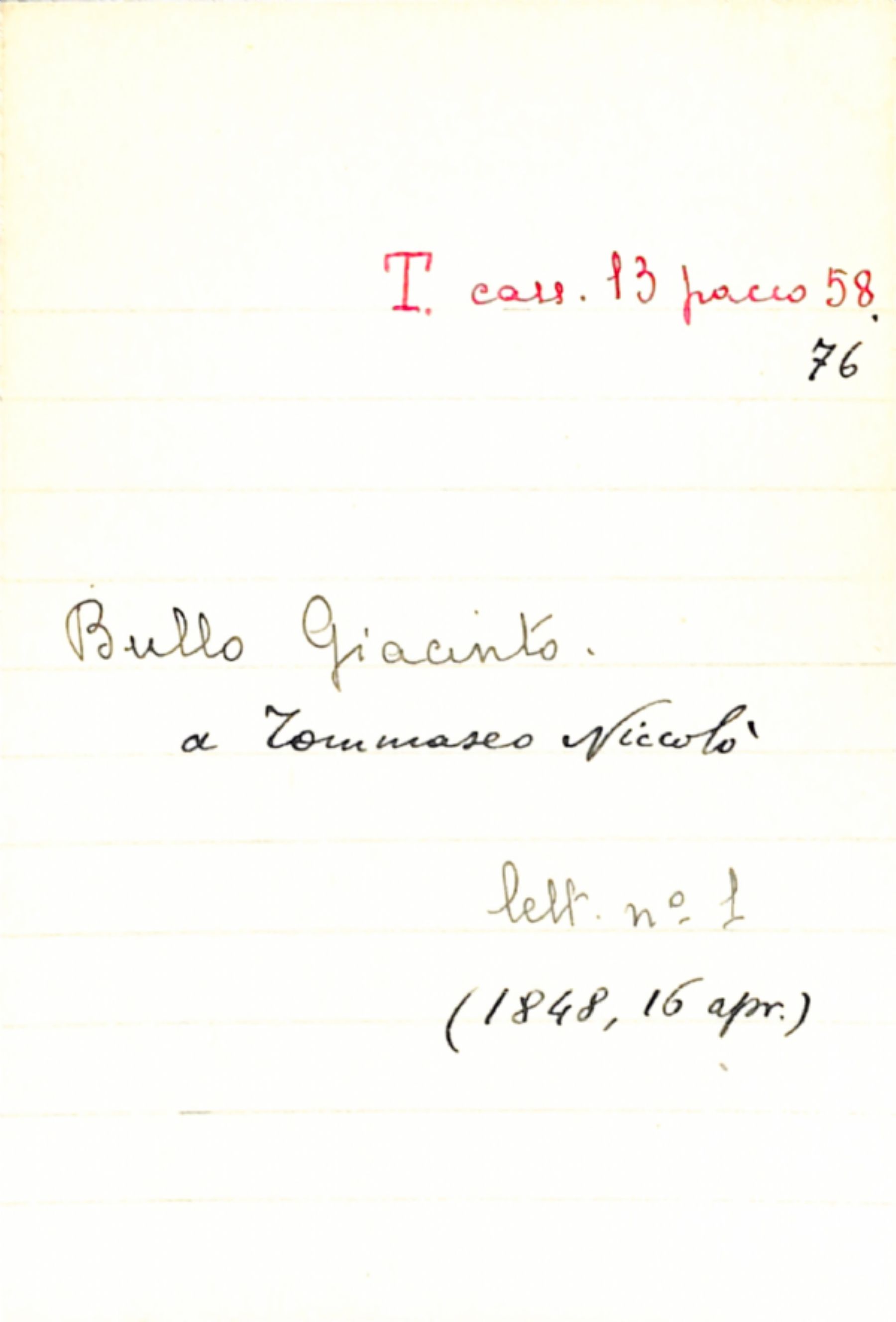 Fascicolo Bullo, Giacinto a Tommaseo, Niccolò