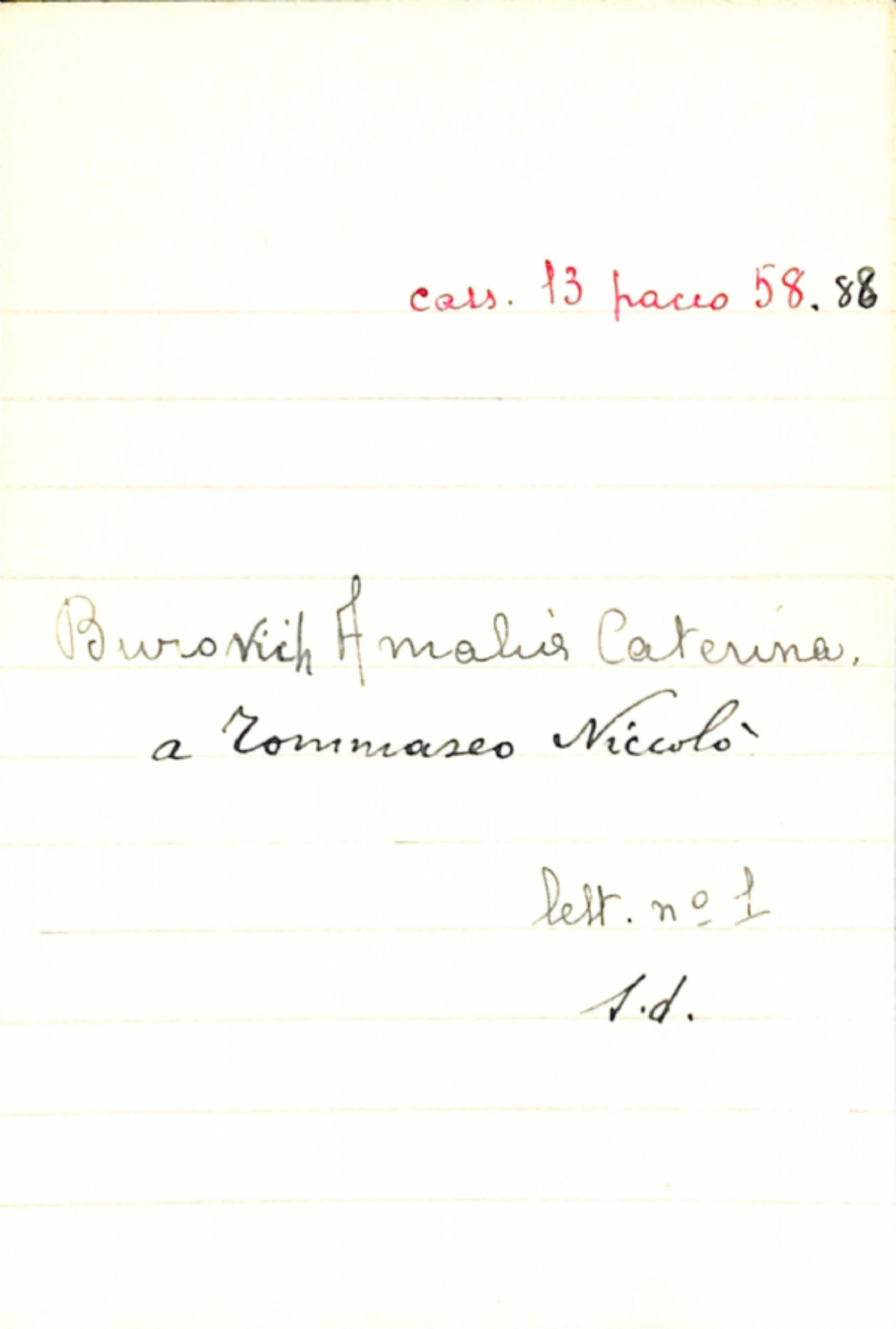 Fascicolo Burovich, Amalia Caterina a Tommaseo, Niccolò