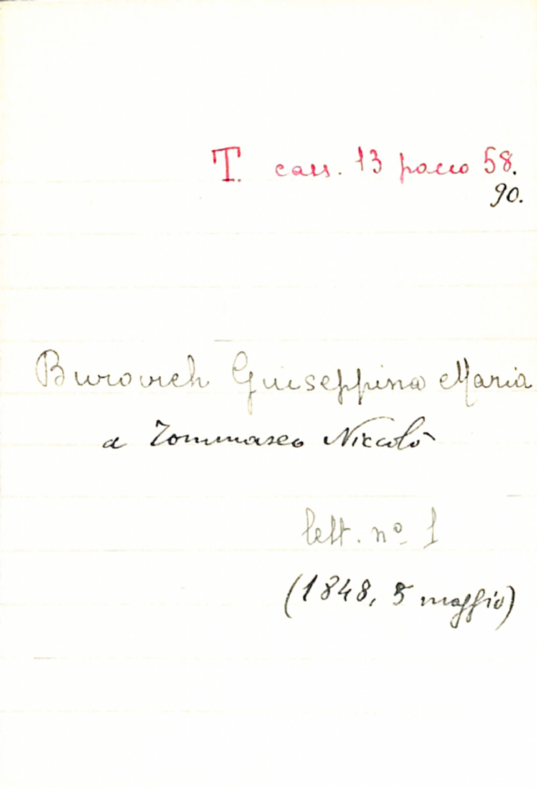 Fascicolo Burovich, Giuseppina Maria a Tommaseo, Niccolò