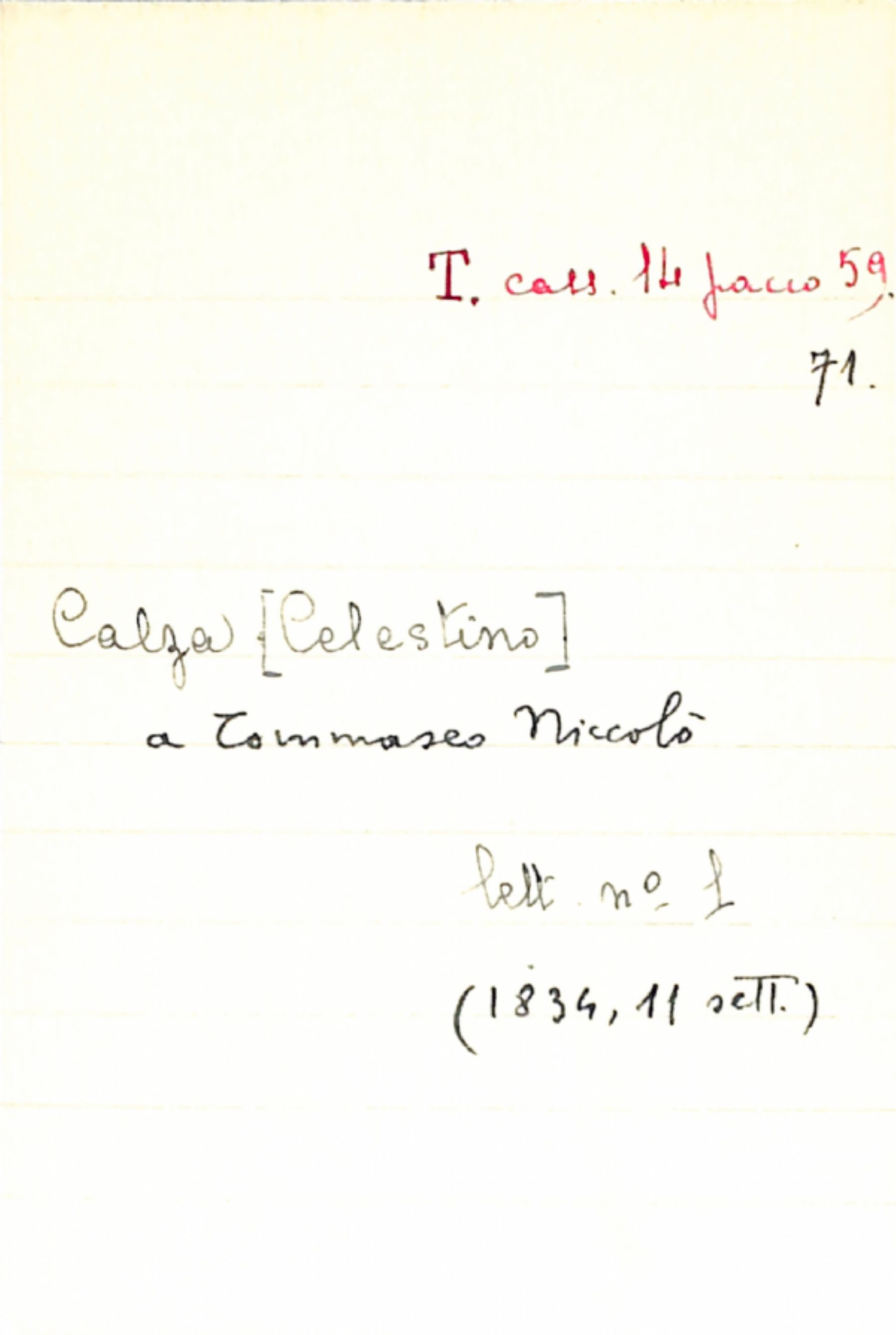 Fascicolo Calza, [Celestino] a Tommaseo, Niccolò