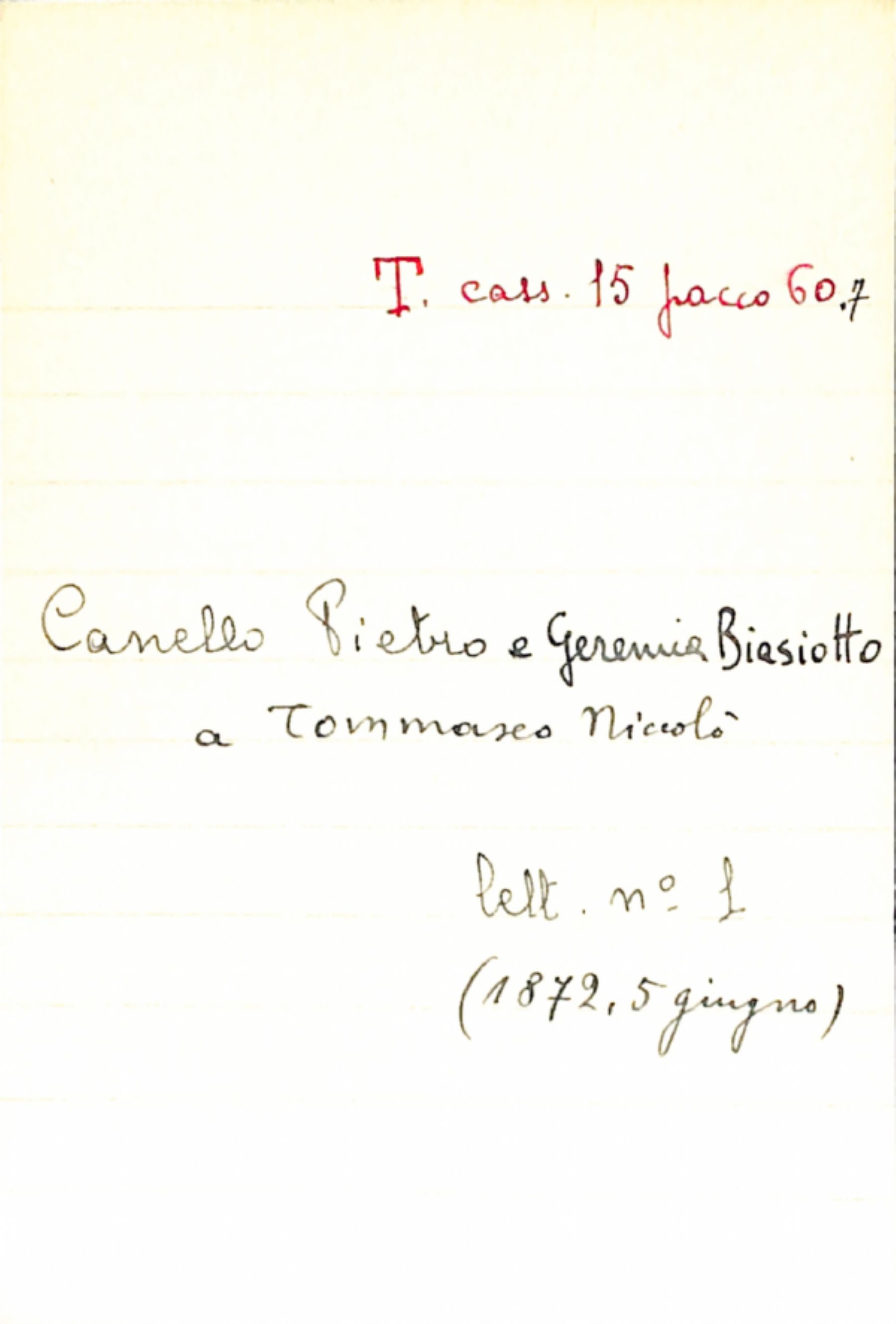 Fascicolo Canello, Pietro; Biasiotto, Geremia a Tommaseo, Niccolò