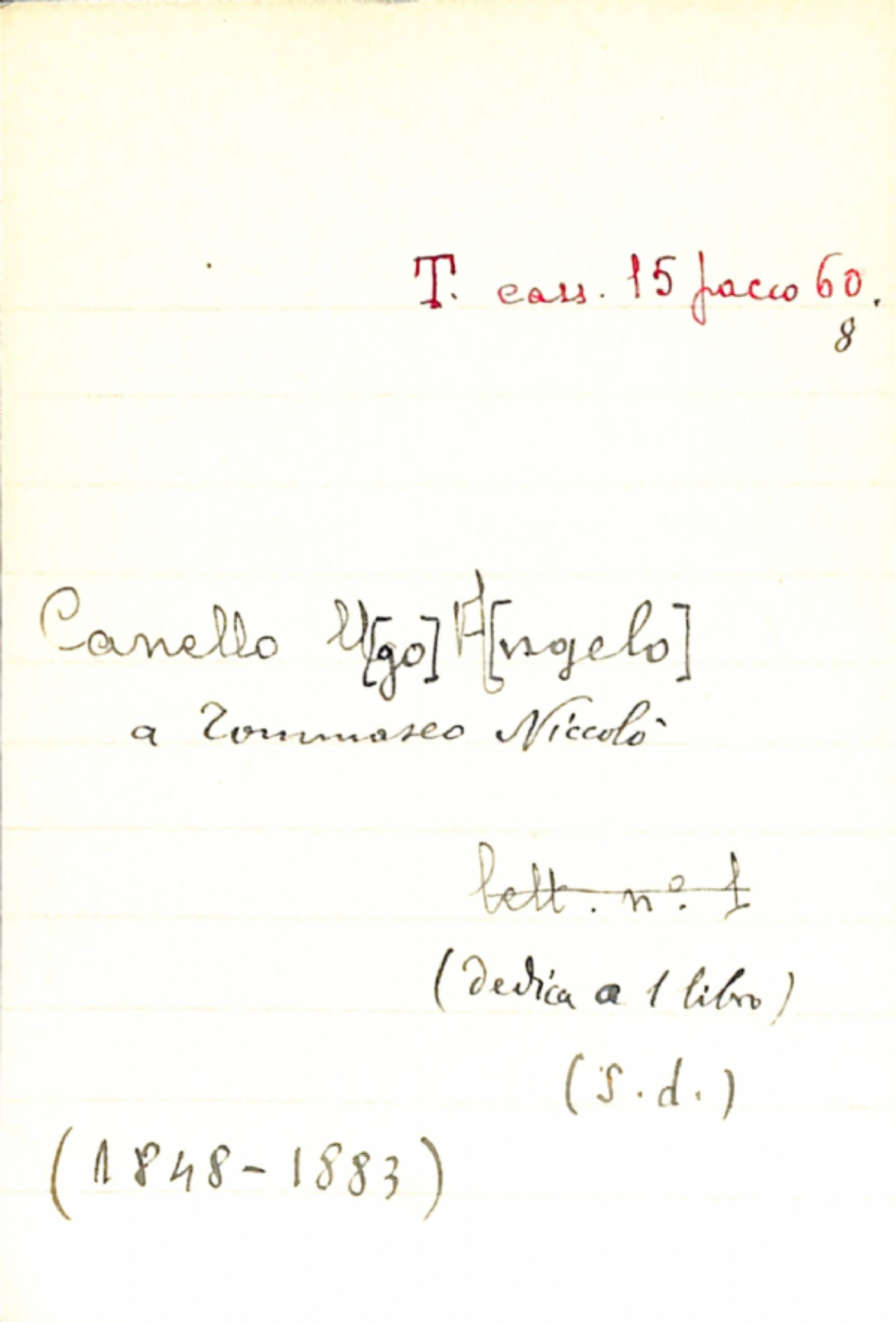 Fascicolo Canello, U[go] A[ngelo] a Tommaseo, Niccolò