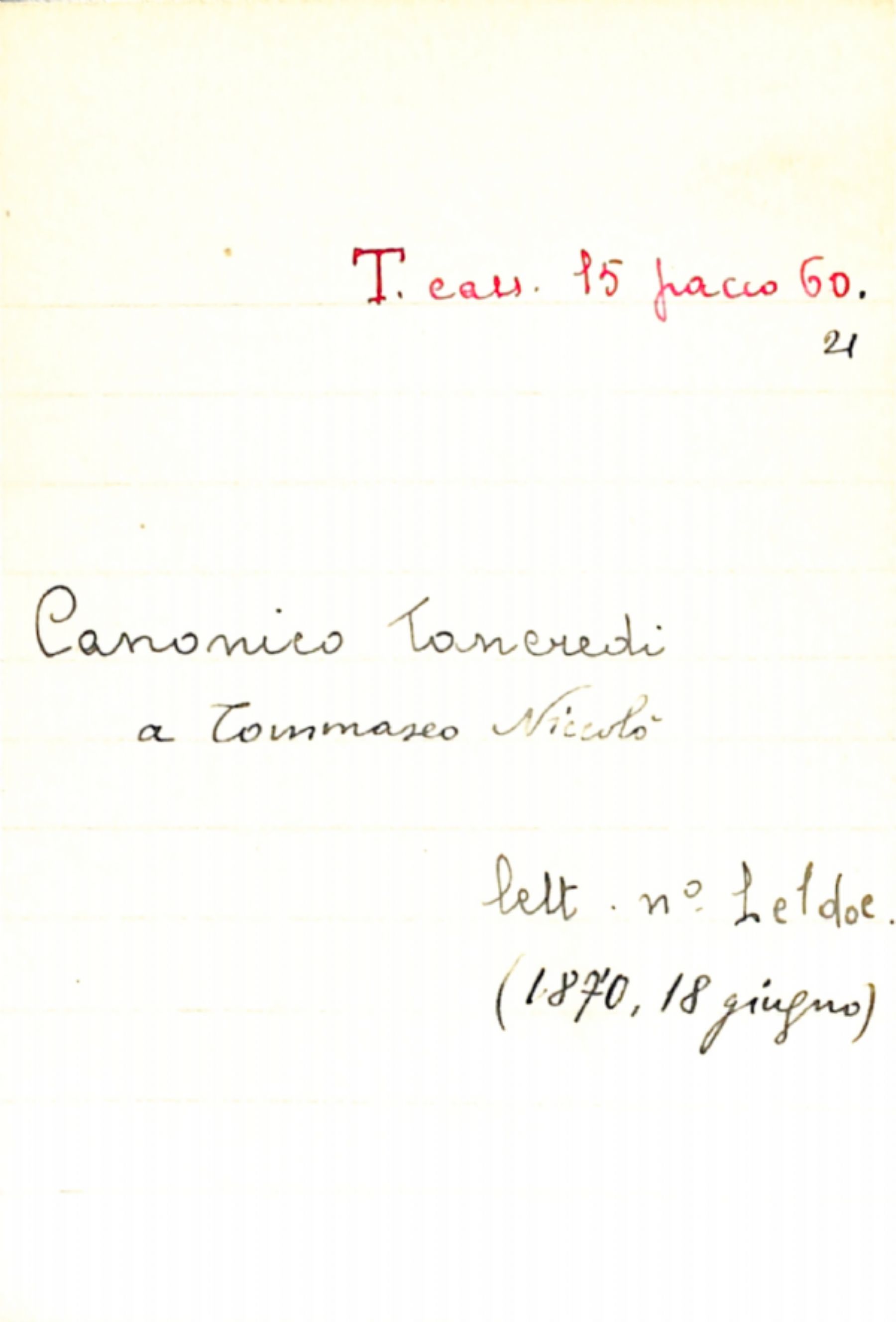 Fascicolo Canonico, Tancredi a Tommaseo, Niccolò