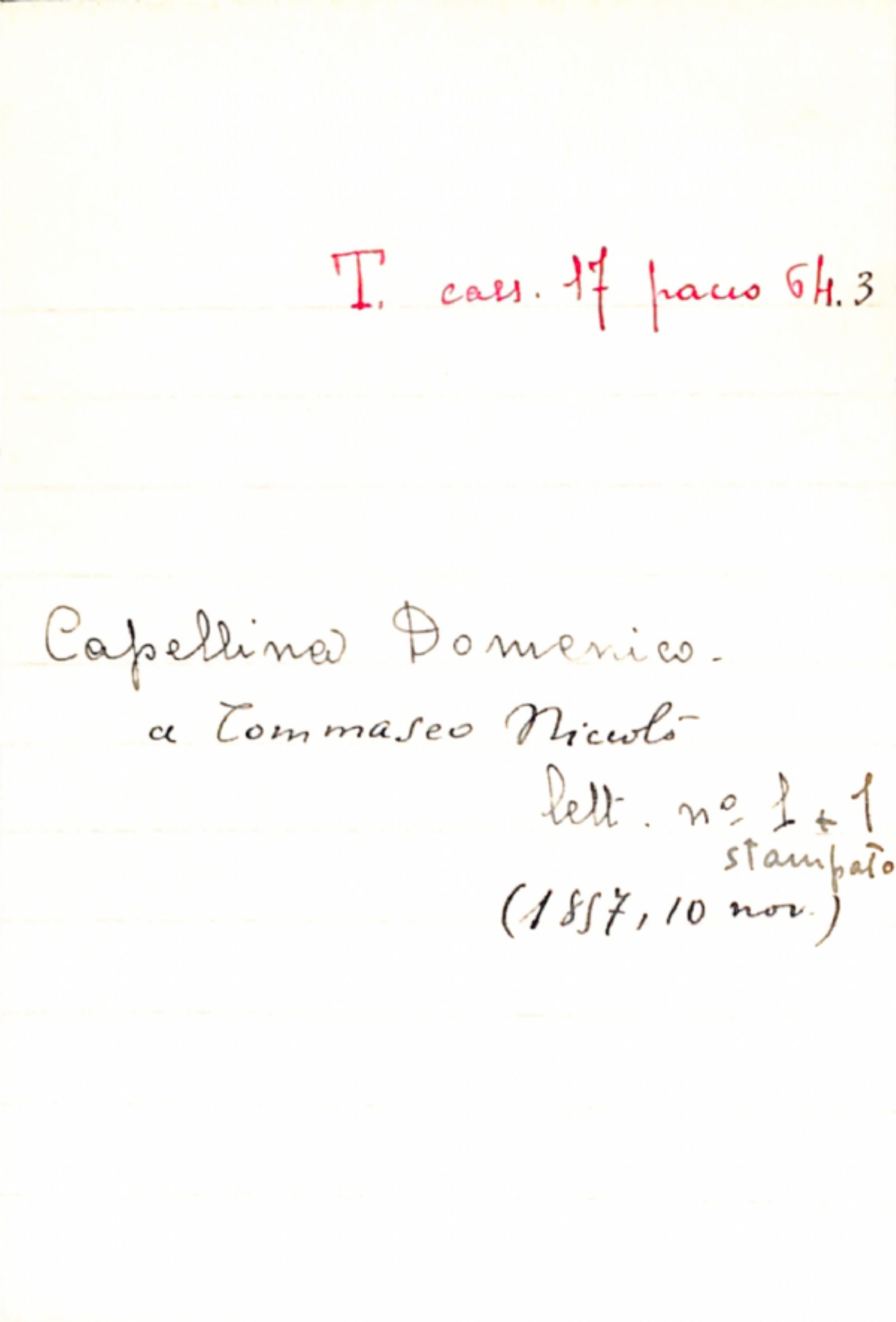 Fascicolo Capellina, Domenico a Tommaseo, Niccolò