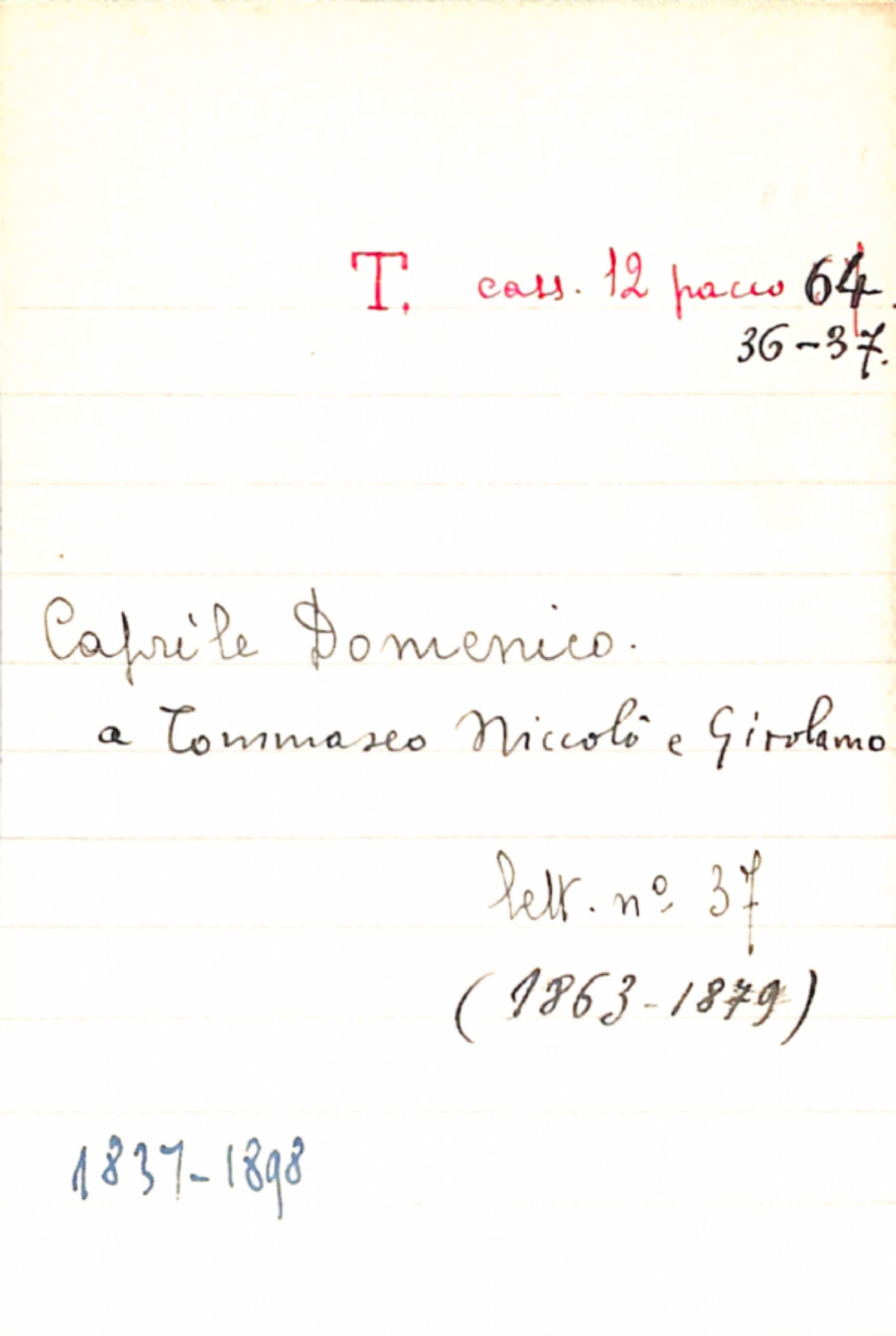 Fascicolo Caprile, Domenico a Tommaseo, Niccolò; Tommaseo, Girolamo