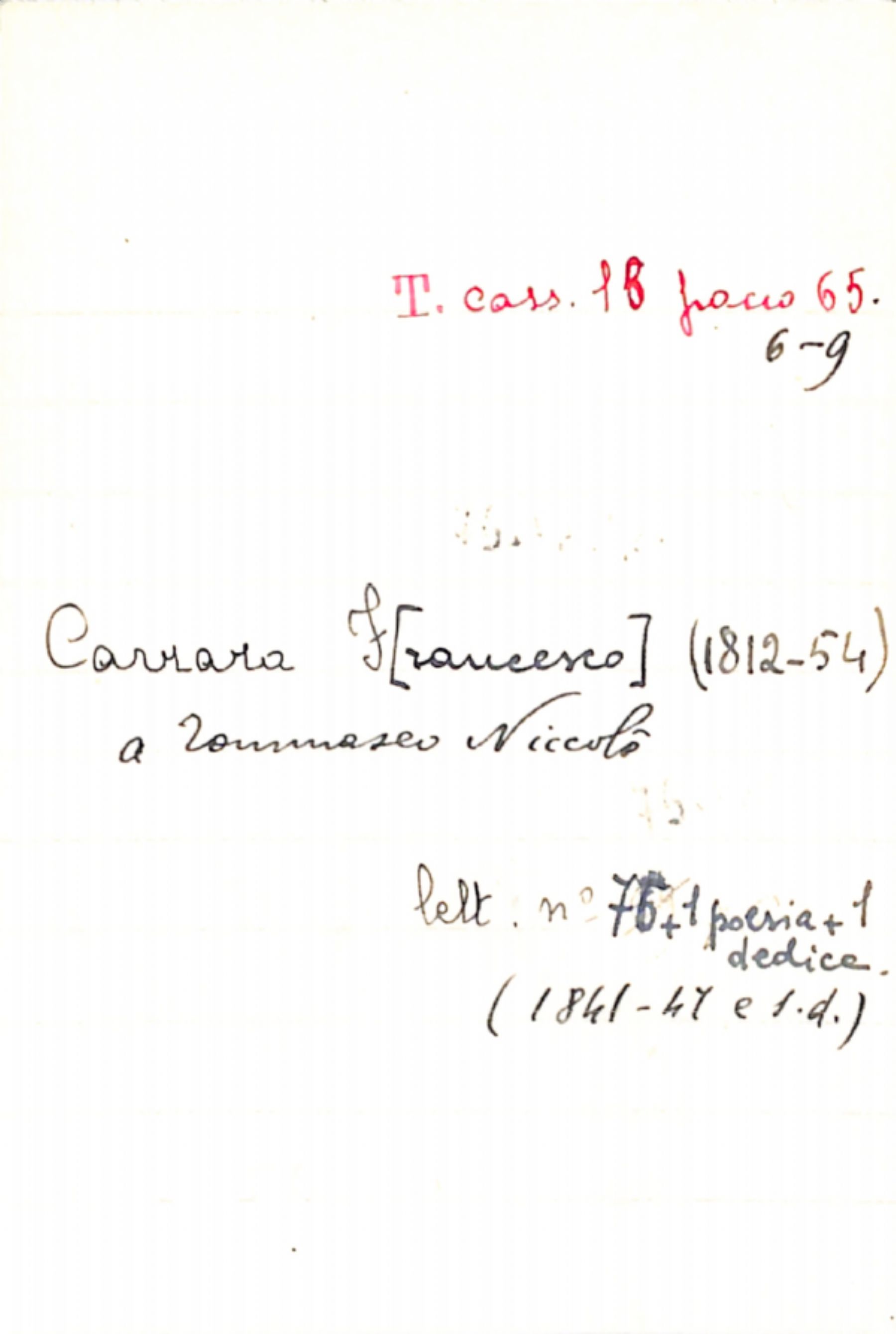 • Carrara F[rancesco] a Tommaseo, Niccolò