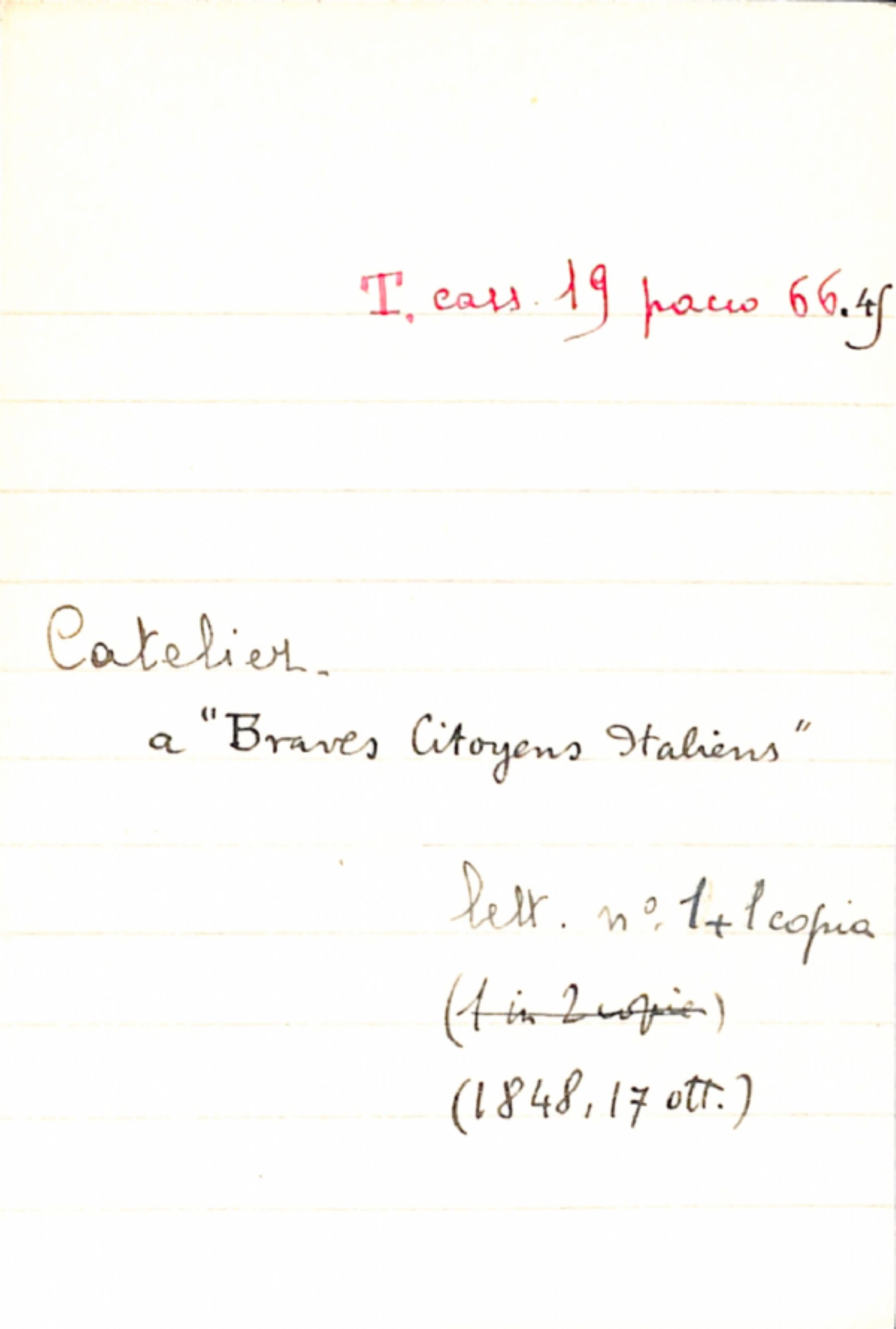 Fascicolo Catelier a "Braves Citoyens Italiens"