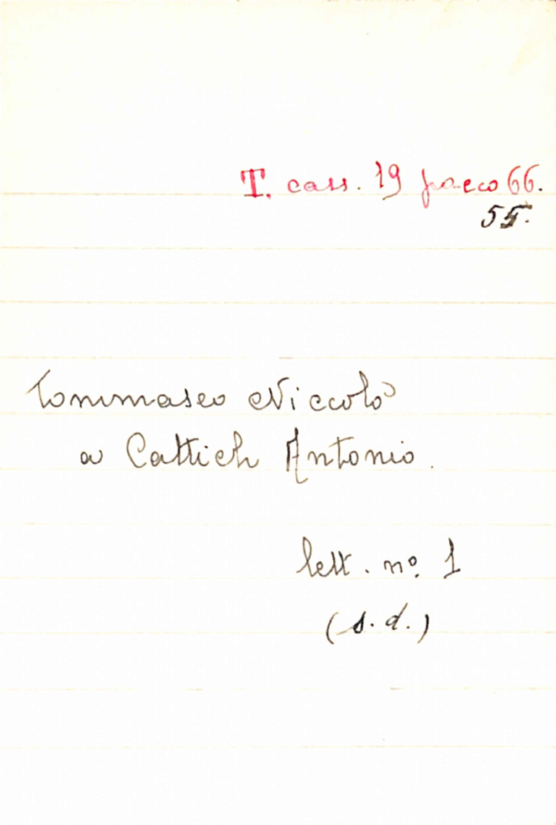 Fascicolo Tommaseo, Niccolò a Cattich, Antonio