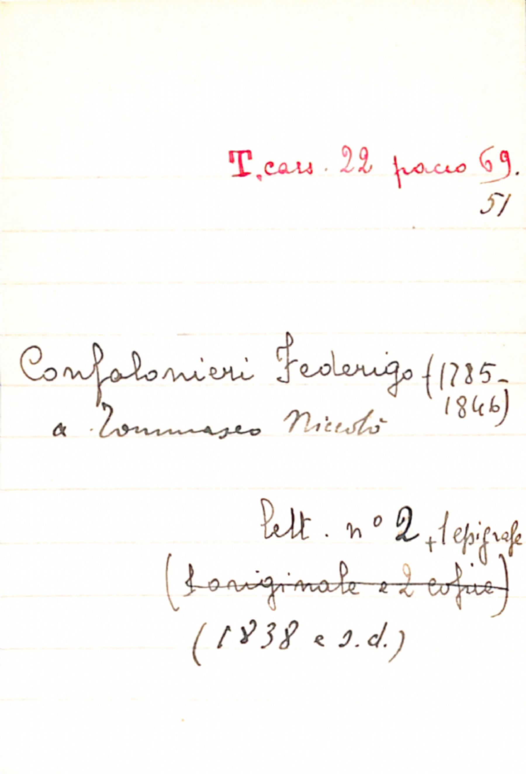 Fascicolo Confalonieri, Federigo a Tommaseo, Niccolò