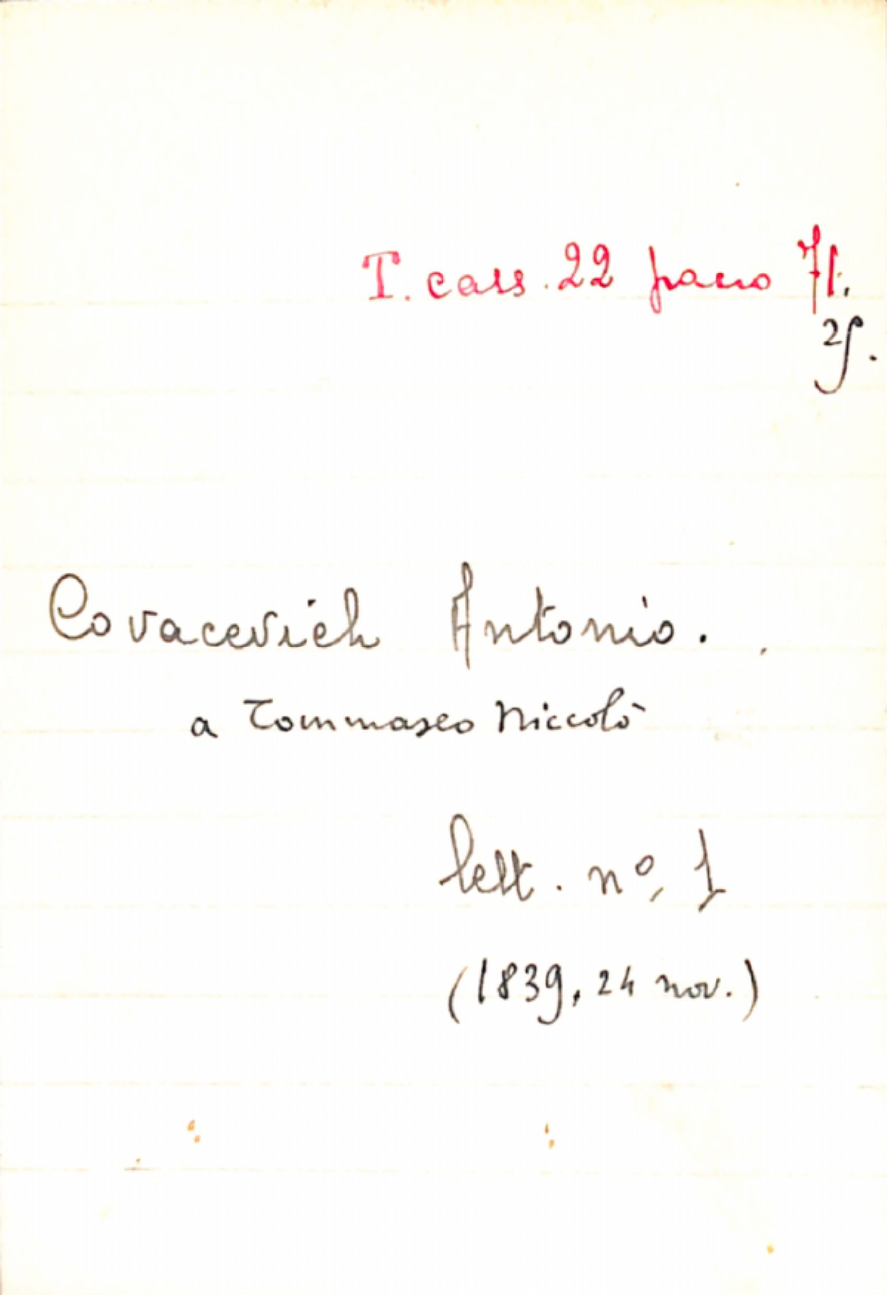Fascicolo Covacevich, Antonio a Tommaseo, Niccolò