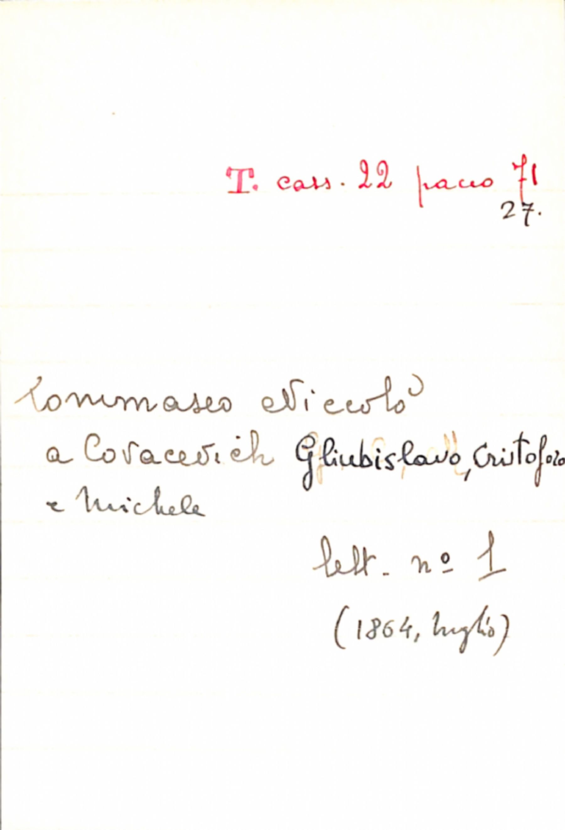 Fascicolo Tommaseo, Niccolò a Covacevich, Gliubislavo; Covacevich, Cristoforo; Covacevich, Michele