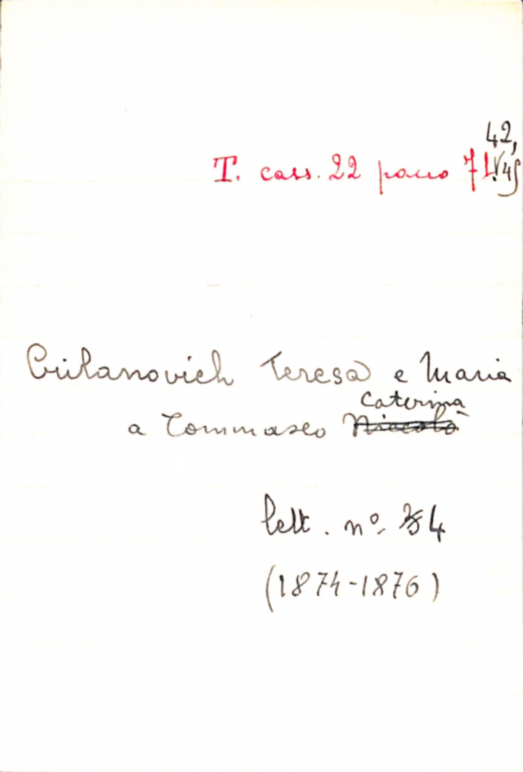Fascicolo Crilanovich, Teresa; Crilanovich, Maria a Tommaseo, Caterina