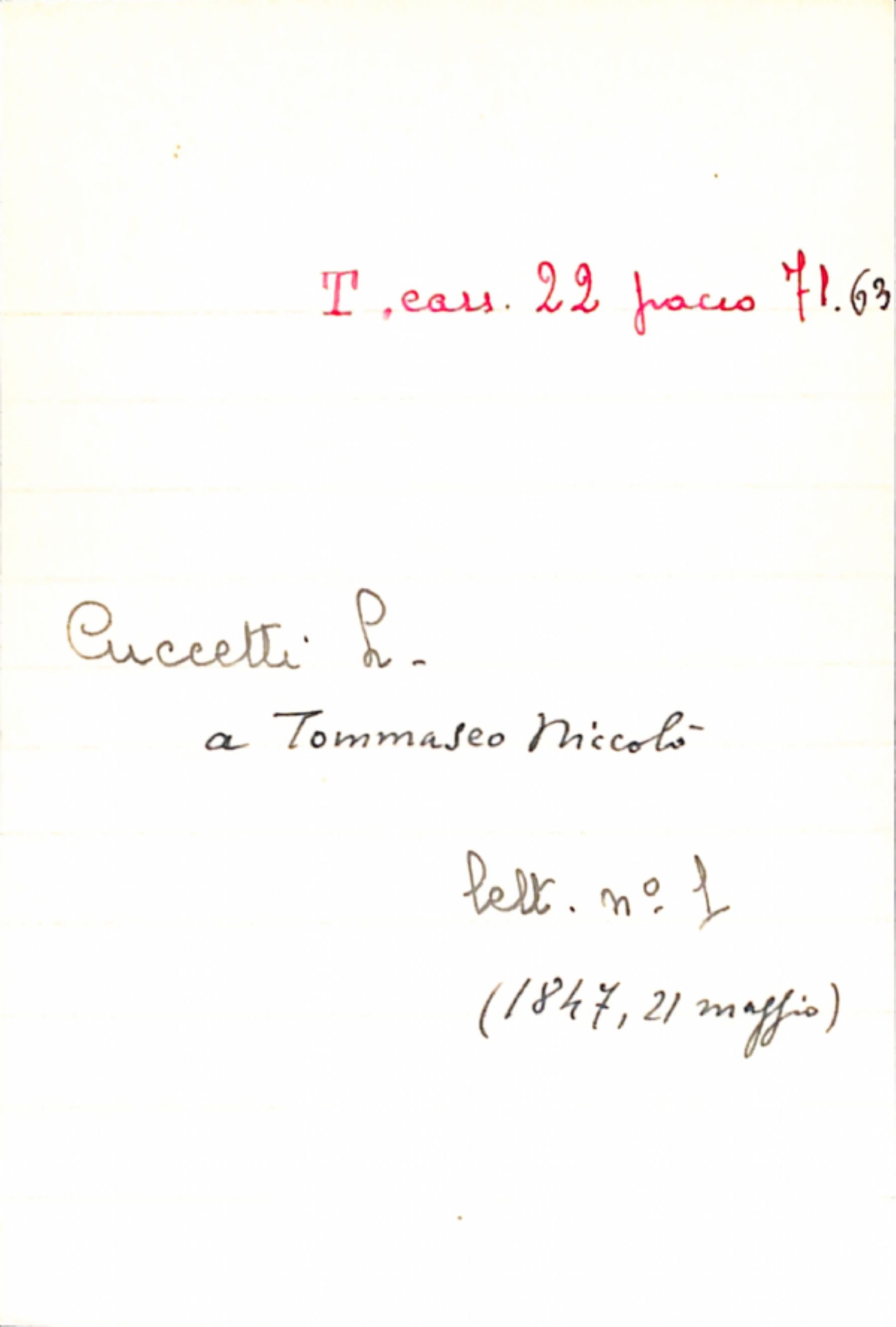 Fascicolo Cuccetti, L. a Tommaseo, Niccolò