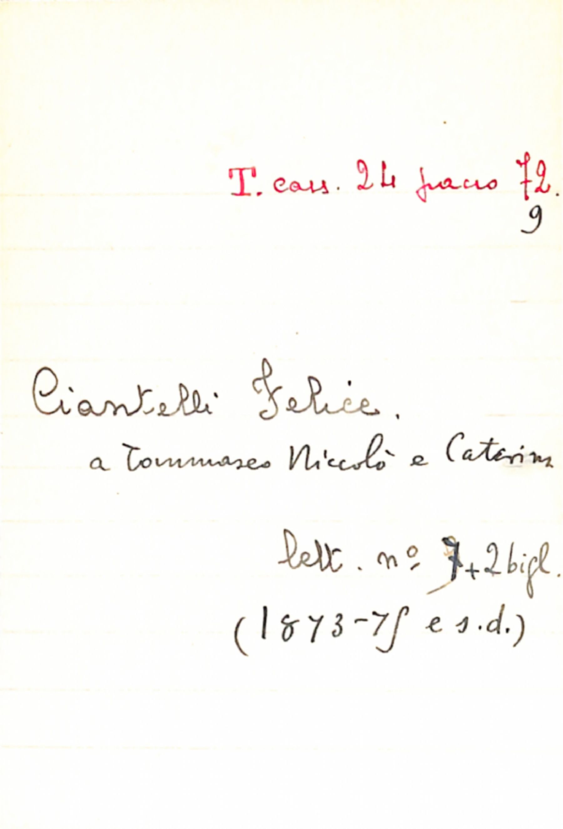 Fascicolo Ciantelli, Felice a Tommaseo, Niccolò; Tommaseo, Caterina