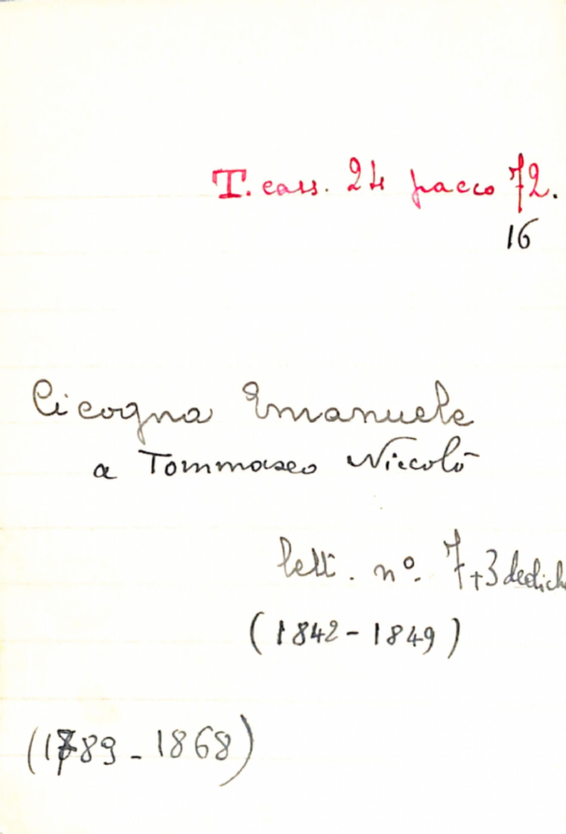 Fascicolo Cicogna, Emanuele a Tommaseo, Niccolò