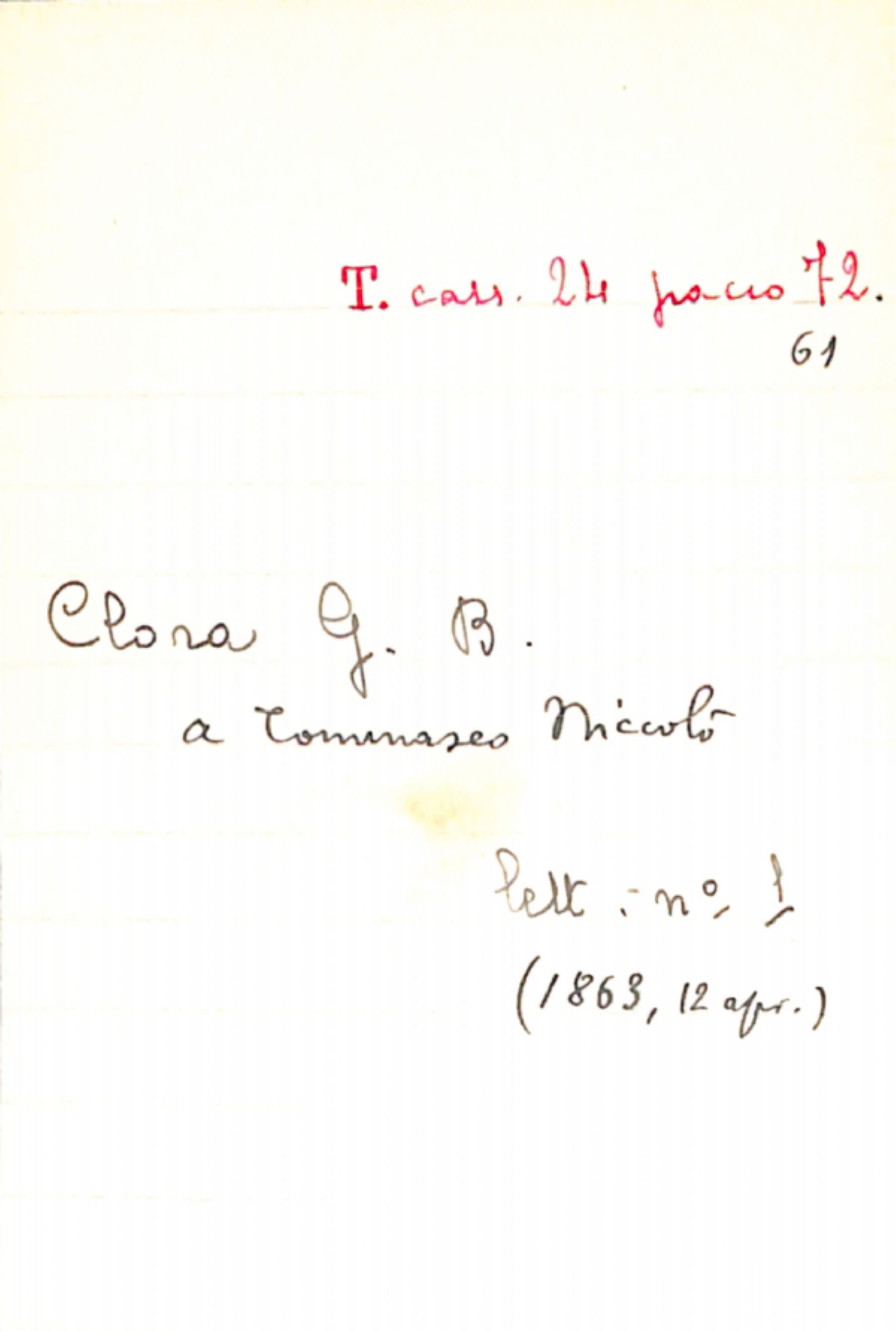 Fascicolo Clora, G: B. a Tommaseo, Niccolò