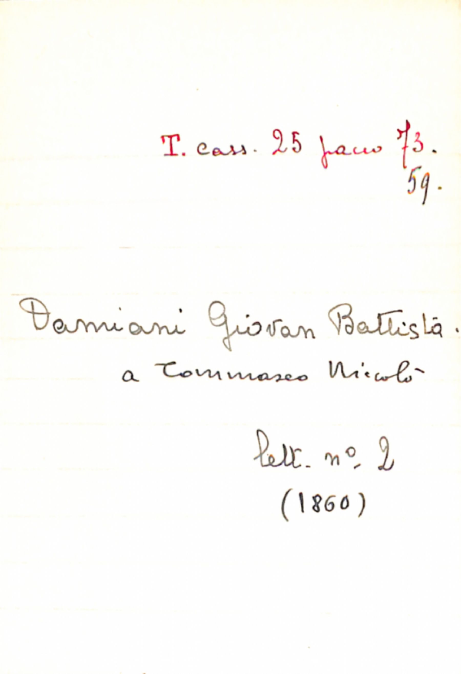Fascicolo Damiani, Giovan Battista a Tommaseo, Niccolò